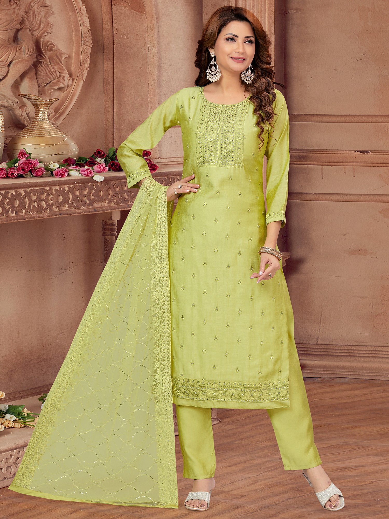 Stylish Green Georgette Kurta Set With Hand Work And Art Silk Bottom For A Contemporary Look