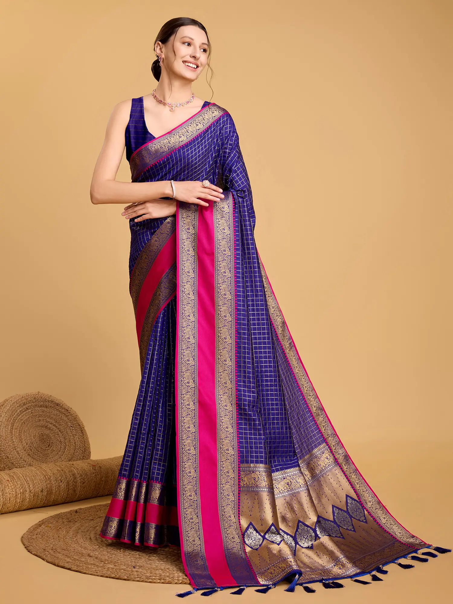 Royal Blue Lichi Silk Saree with Rich Jacquard Pallu & All-Over Jacquard Work