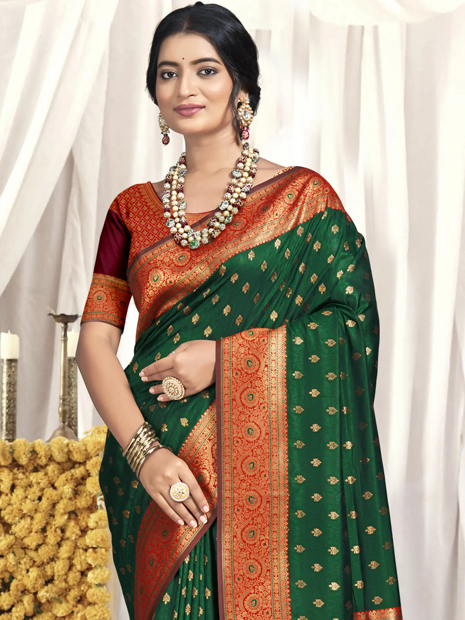 Party Wear Vichitra Silk Saree With Gold Zari Work On Border And Motifs All-Over