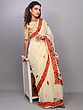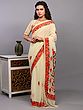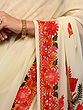Snow-White Georgette Saree from Kashmir with Aari Embroidered Floral Border and Aanchal