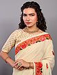 Apricot-Gelato Floral Aari Embroidered Georgette Saree from Kashmir