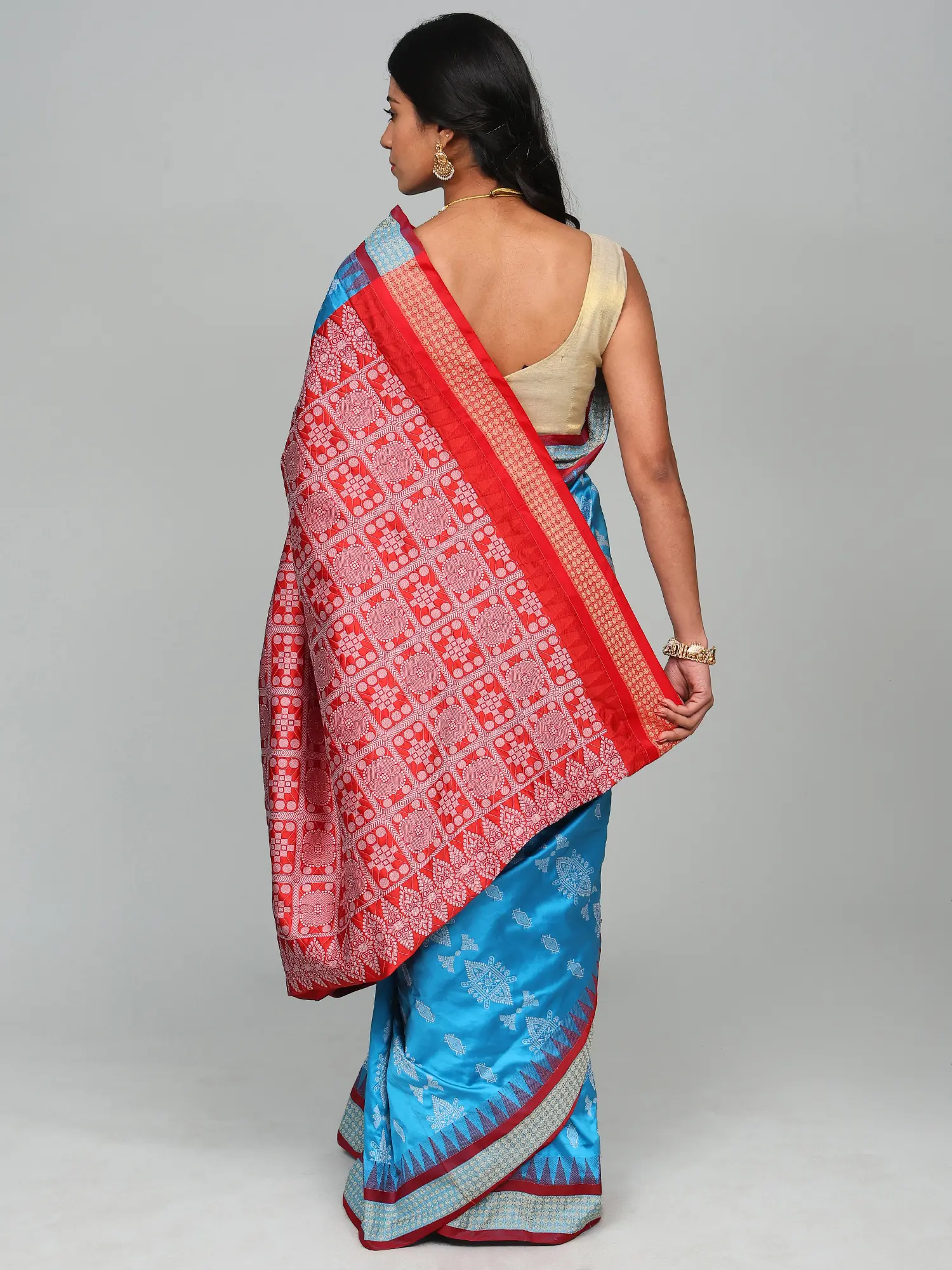 Brilliant-Blue Bomkai Handloom Saree from Odisha with Woven Bootis and Box Pallu