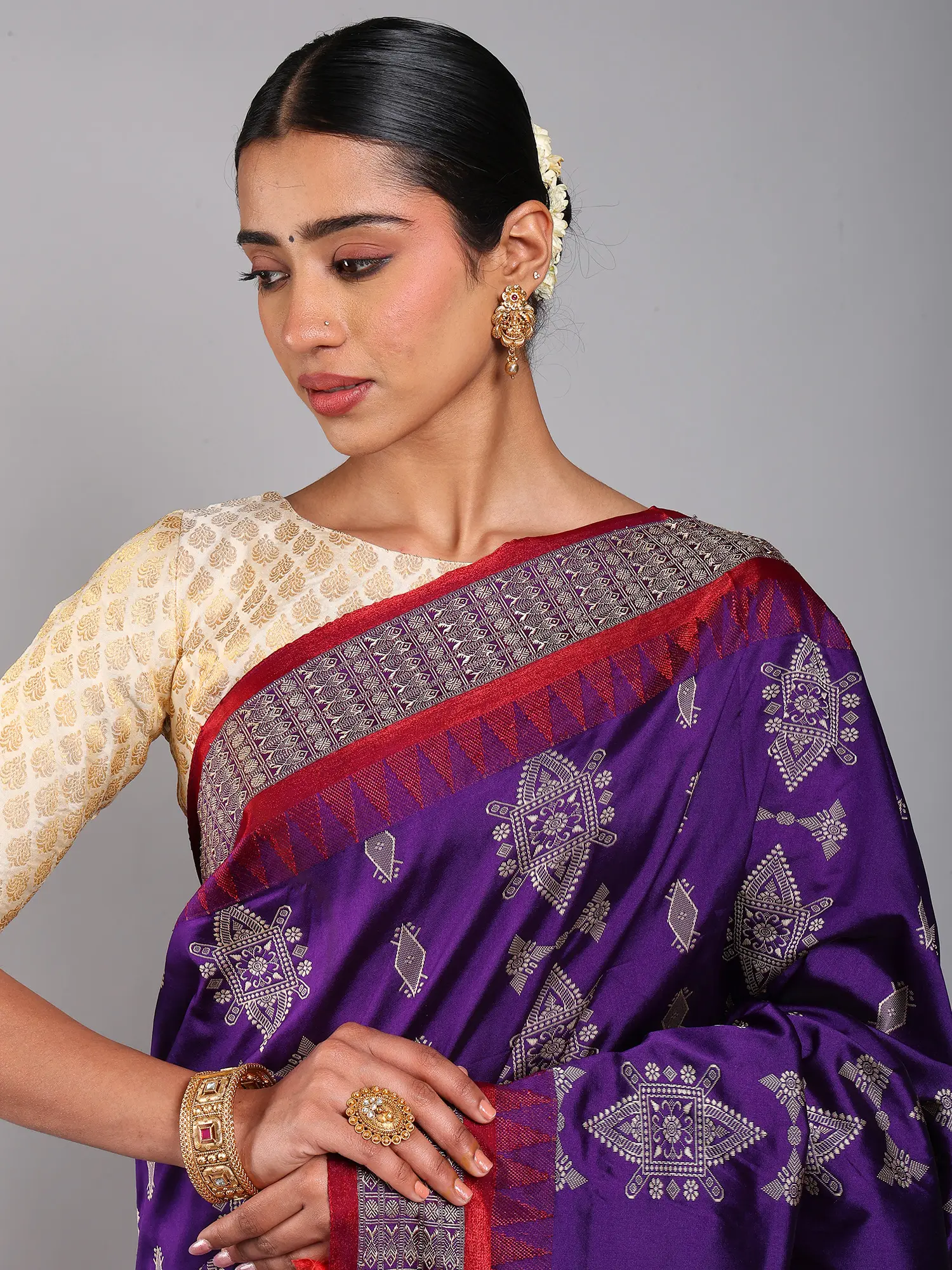 Magenta-Black Bomkai Saree from Odisha with Woven Floral Motif