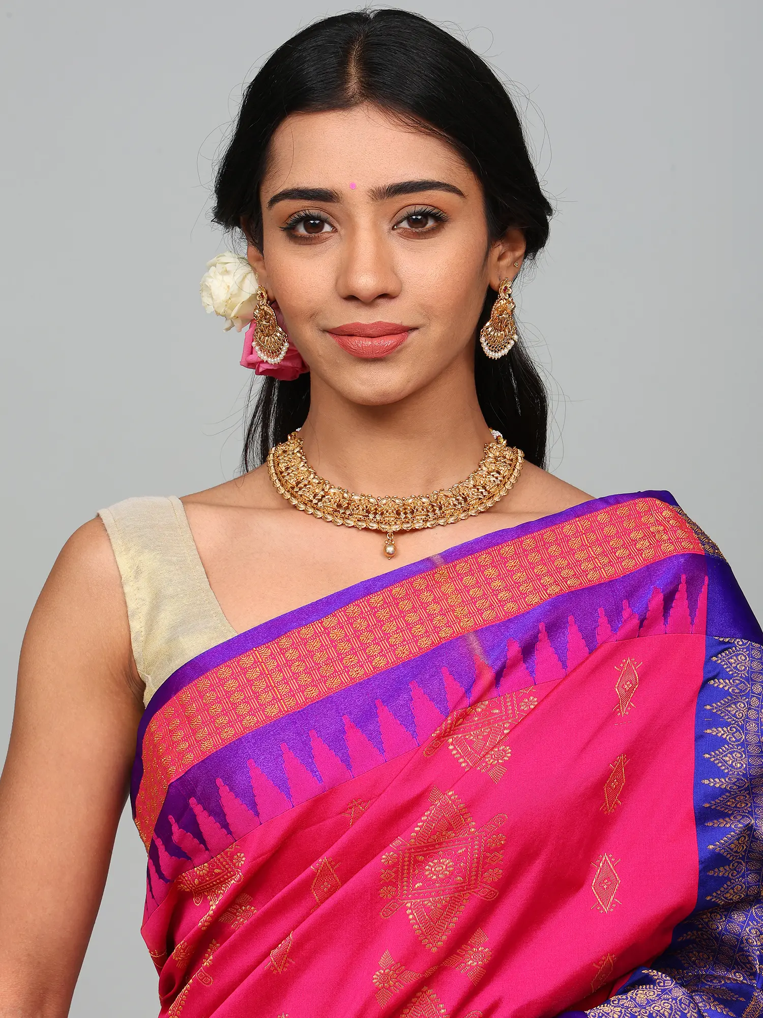 Hot-Pink Hand-Woven Bomkai Fabric from Odisha