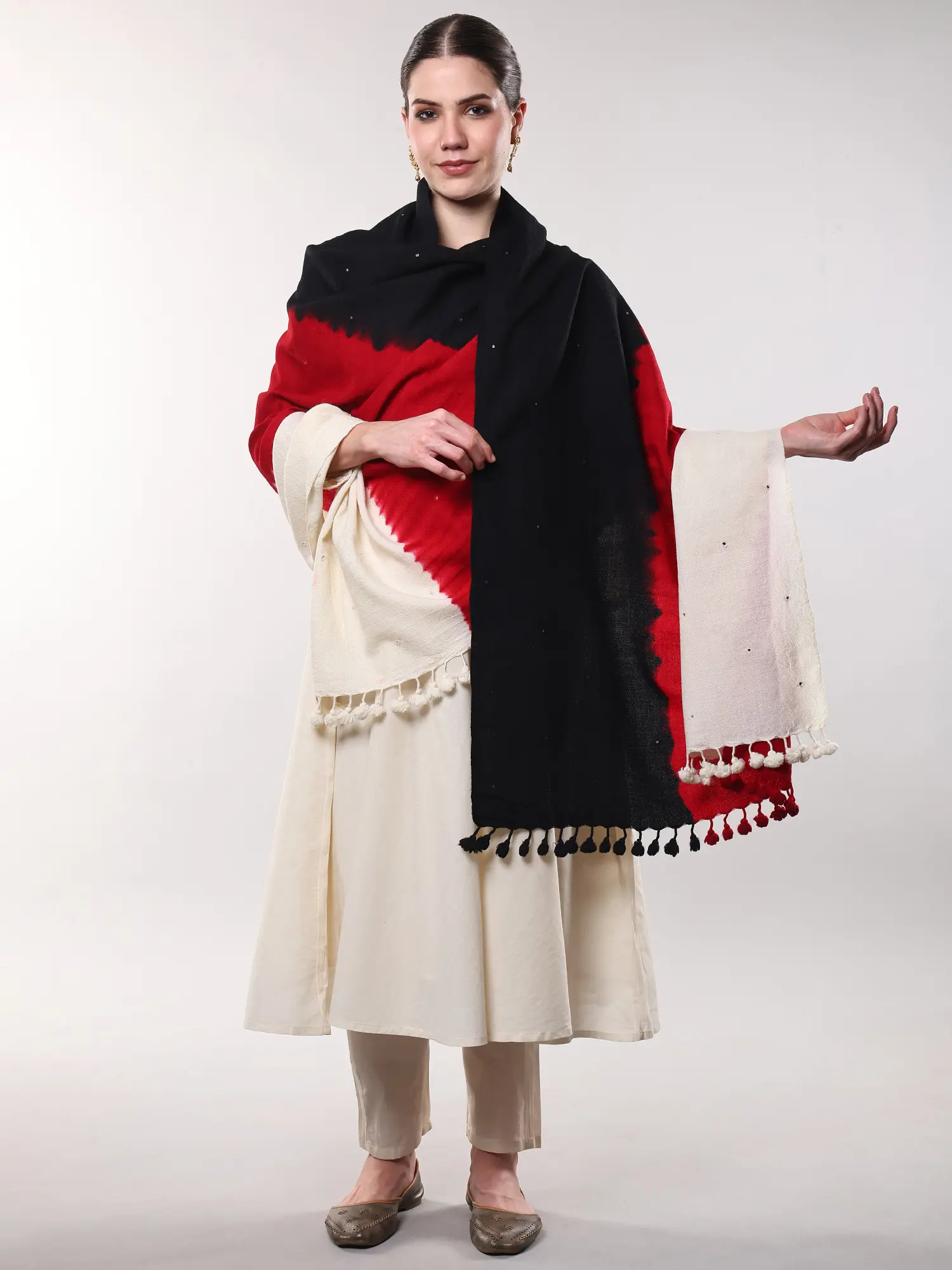 Drape it elegantly over a simple kurta for a touch of bohemian chic, or use it to add a layer of warmth and sophistication to evening wear. Its substantial size allows for myriad styling possibilities, from a traditional shawl to a striking statement wrap. It’s the perfect companion for cooler evenings, sophisticated gatherings, or simply as a luxurious touch to your everyday ensemble.