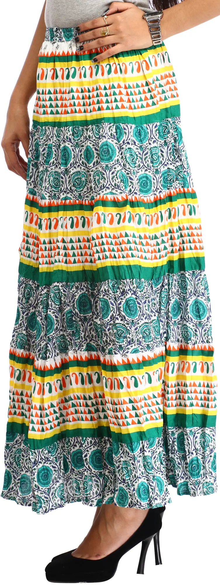 Elevate your casual chic style with this Tropical-Green Long Elastic Skirt featuring a stylish geometric print. The elastic waist ensures a comfortable and flexible fit, making it ideal for various occasions. The vibrant green color and eye-catching geometric pattern add a touch of contemporary flair to your ensemble. Pair it with a solid-colored top for a balanced look or mix and match with other patterns for a bold fashion statement. Whether you're strolling through the city or enjoying a beach day, this skirt effortlessly combines comfort and trendiness, making it a versatile addition to your wardrobe.