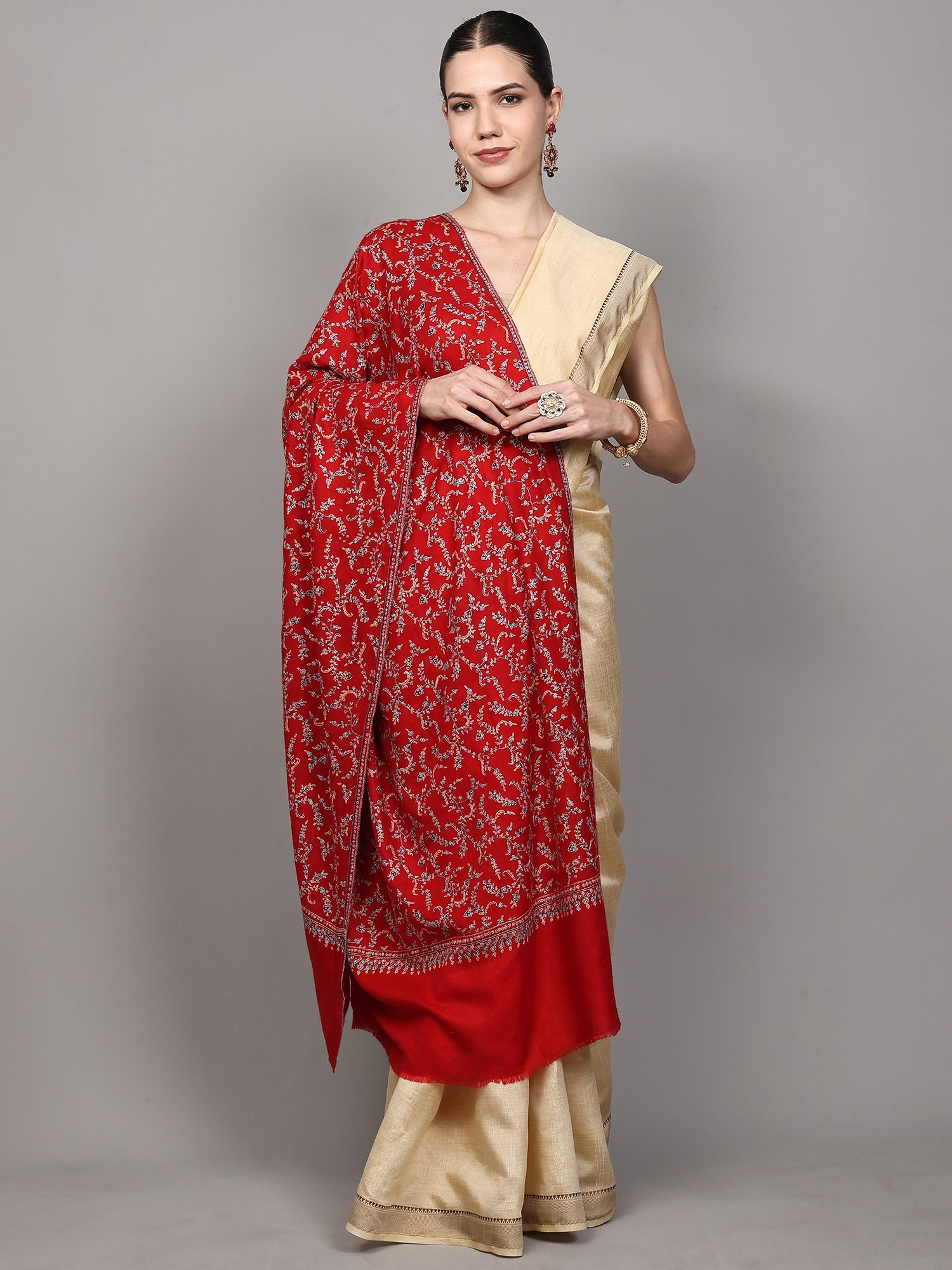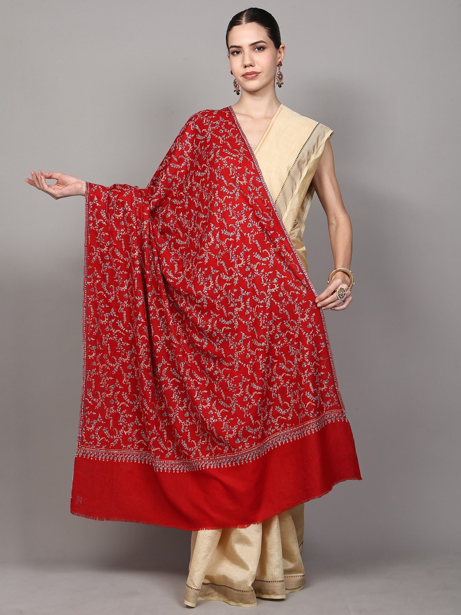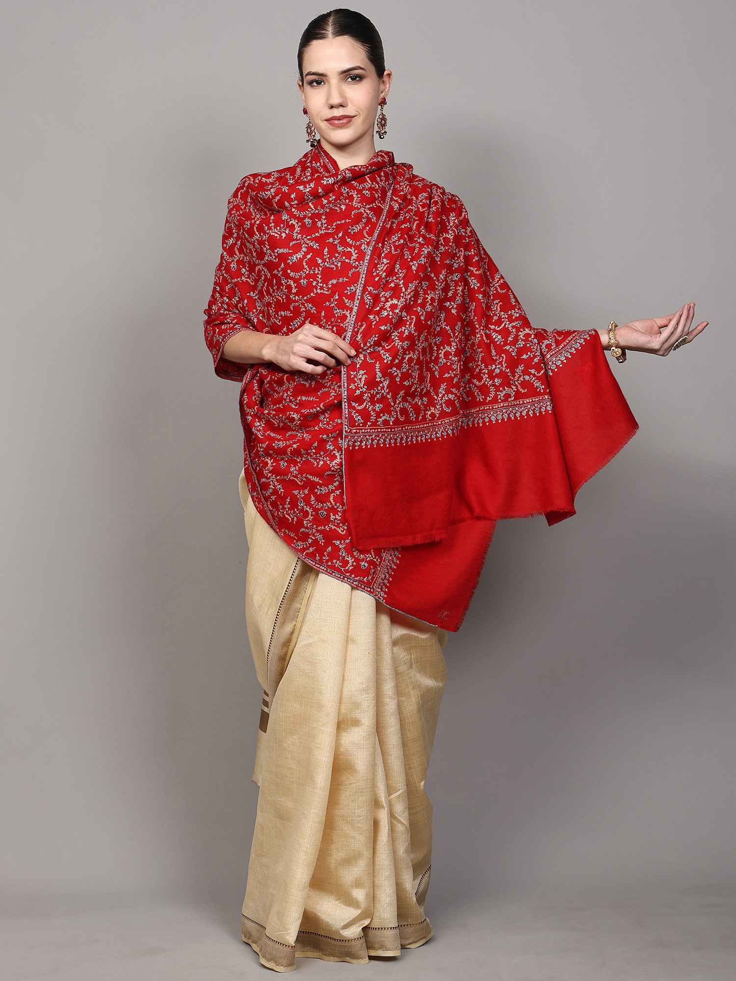Pure Pashmina Natural Color Sozni Border Shawl from Kashmir
