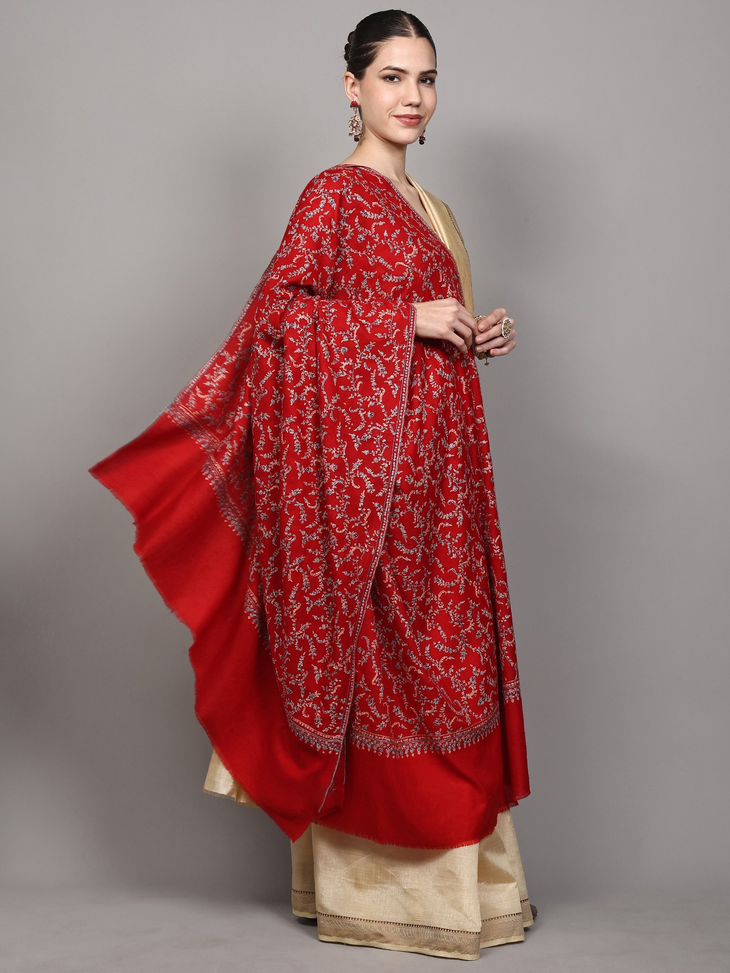 Mint-Green Pure Pashmina Shawl with Detailed Floral Jaal Sozni Embroidery by Hand
