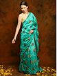 The Turquoise Kanchipuram Silk Saree, adorned with intricate Tree Buttas, embodies an elegant allure with its captivating turquoise hue and regal golden embellishments. The splendor of the silken drape infuses the ensemble with a touch of opulence, making it an ideal choice for those with an affinity for traditional Indian wear. The timeless beauty of this saree ensures its longevity, allowing it to remain a cherished piece in your wardrobe for decades to come.