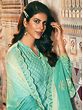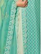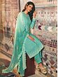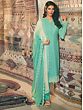 Symmetrical patterns on the straight-cut Kameez of this Turquoise-green salwar-suit set with a tasteful round neck give your everyday fashion an elegant touch.