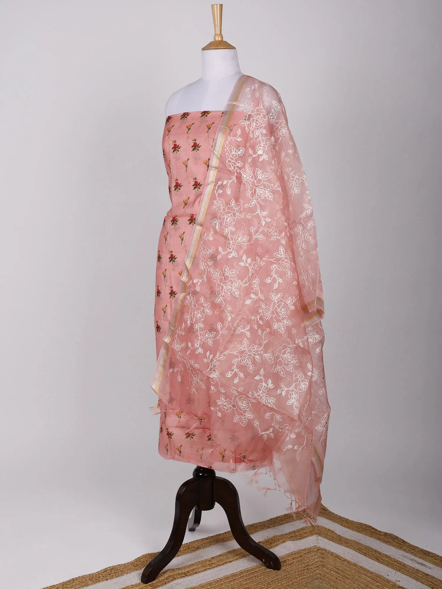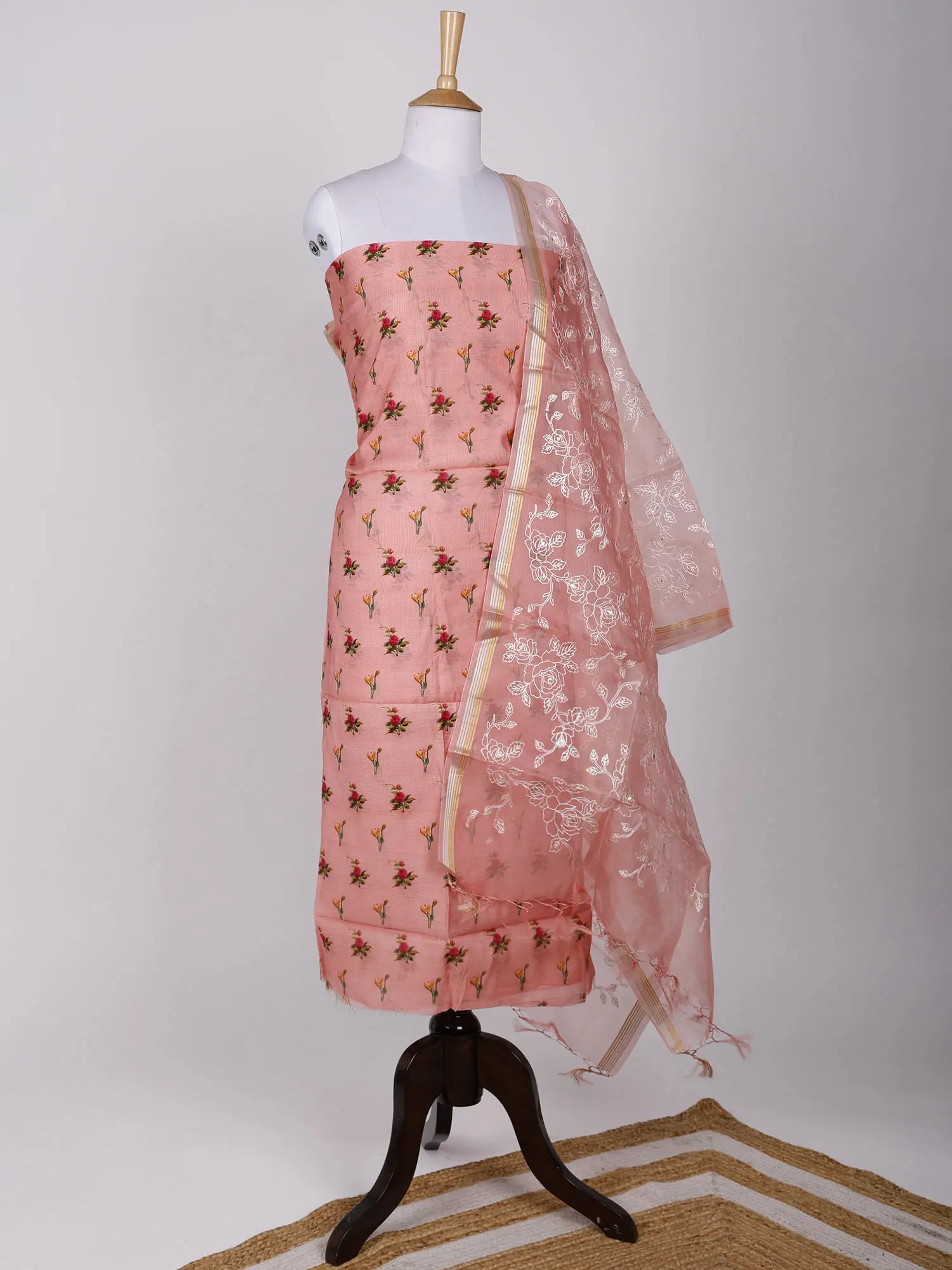 Orange-Pepper Chanderi Saree from Madhya Pradesh with Zari-Woven Border and Bootis