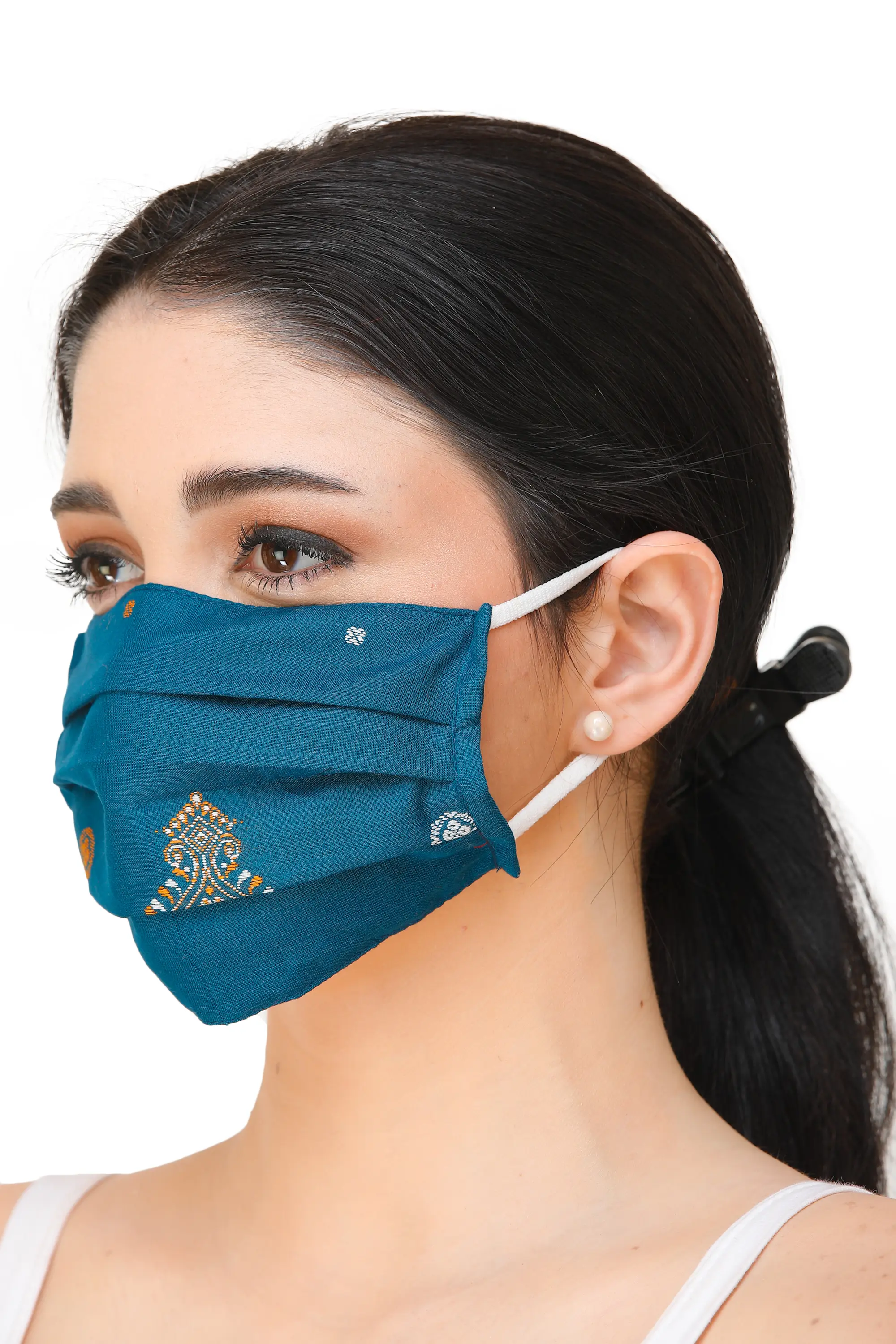 Made from pure cotton, this mask epitomises comfort and breathability. The handloom weaving gives an artisanal touch, reflecting the rich heritage of Karnataka. Its two-ply design, coupled with a soft cotton backing, ensures optimal protection and ease for extended wear. The snug yet gentle ear loops promise a secure fit. More than a protective accessory, this mask is a symbol of responsible fashion, blending tradition and functionality seamlessly. Navigate the world confidently, knowing you embrace safety without compromising on elegance.