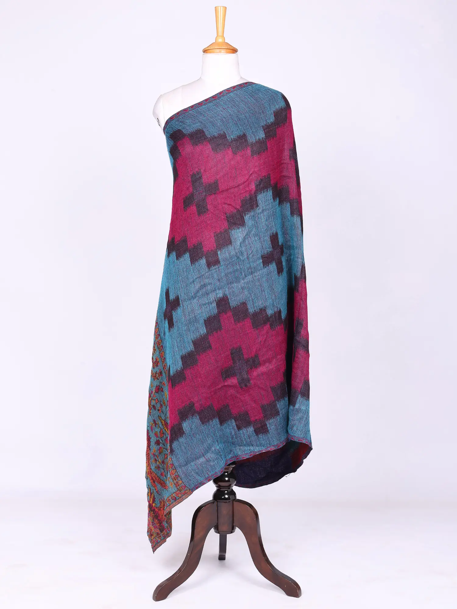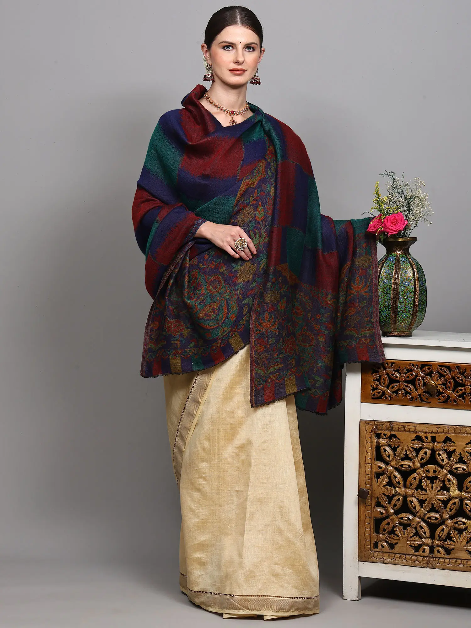 Reversible Jamawar Shawl from Amritsar with Woven Flowers