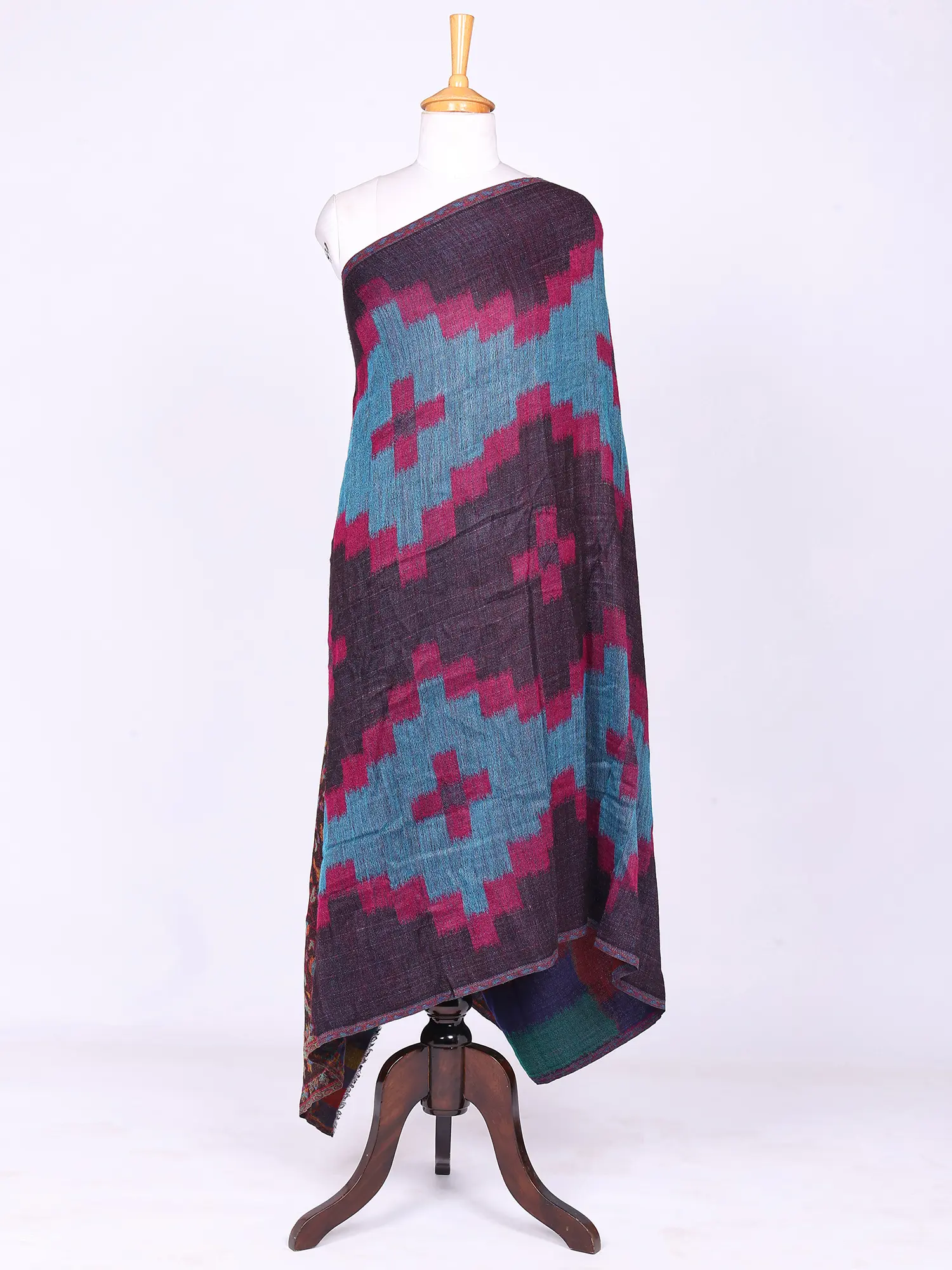 Reversible Kullu Stole with Chevron Weave and Multi Stripe Border