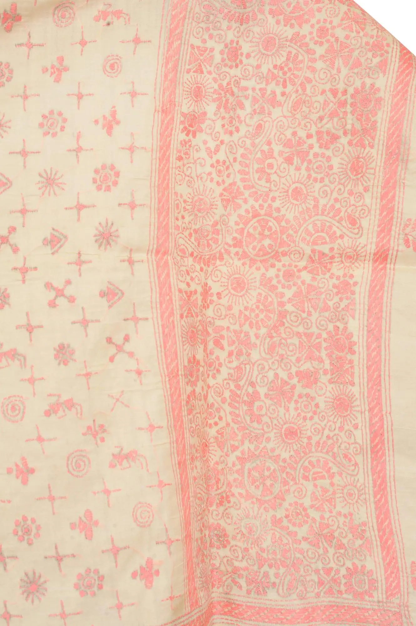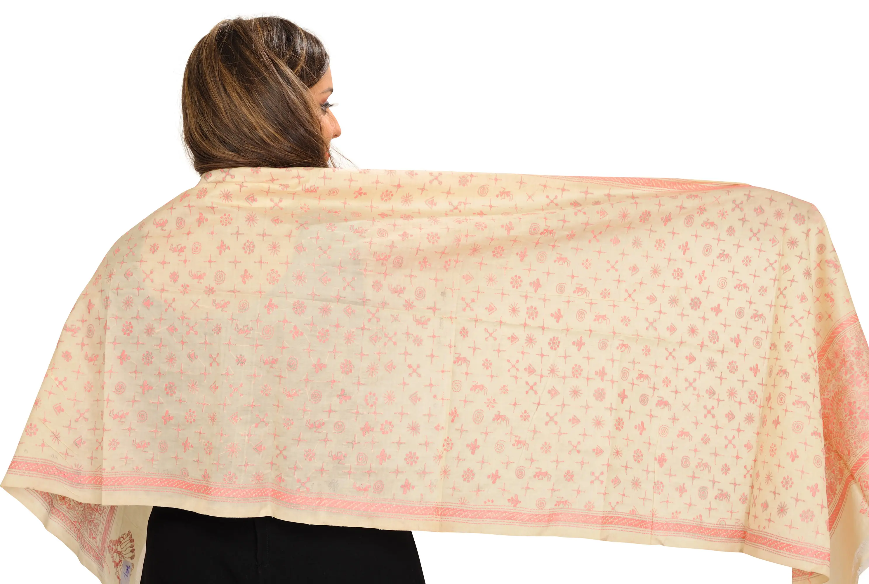 Antique-White Paisley Jaal Aari Hand-Embroidered Pure Wool Shawl from Kashmir