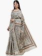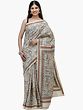 Winter-White Pure Silk Sari from Bengal with Kantha Hand-Embroidered Motifs and Heavy Pallu