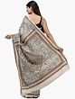 Vanilla-White Pure Silk Sari with Heavily Hand-Embroidered Kantha Motifs from Kolkata