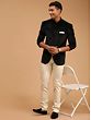 This Velvet All-Over Polka Dot Printed Jodhpuri Style Blazer for men is a statement piece. The luxurious velvet fabric adds a touch of opulence, while the playful polka dot pattern injects a dose of personality and charm. The velvet fabric has been an item of luxury for ages. In earlier times only royalty had access to this fabric. Embracing the Jodhpuri style, the blazer features a mandarin collar and intricate detailing, merging traditional aesthetics with contemporary fashion. Perfect for formal occasions or adding flair to casual settings, this blazer effortlessly combines sophistication and style. Step out in confidence, as the all-over polka dot print elevates your ensemble, making this blazer a standout piece in any wardrobe.