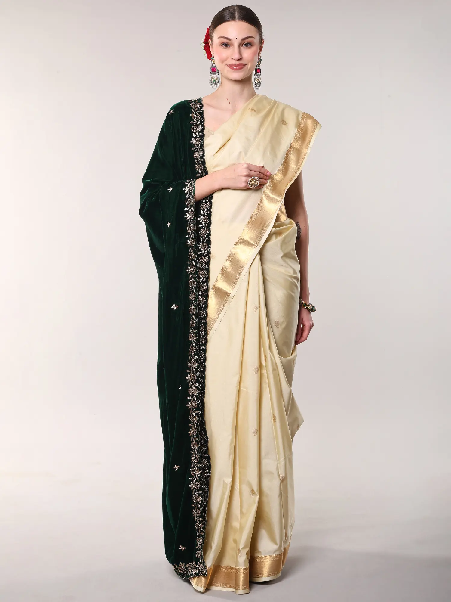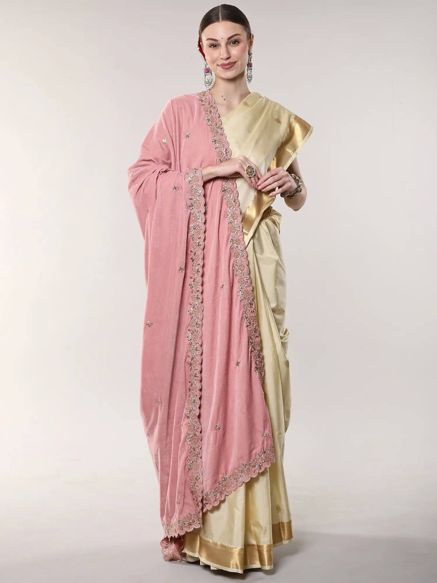 Velvet Dupatta from Amritsar with Golden Thread woven Floral Scalloped Border and Bead work