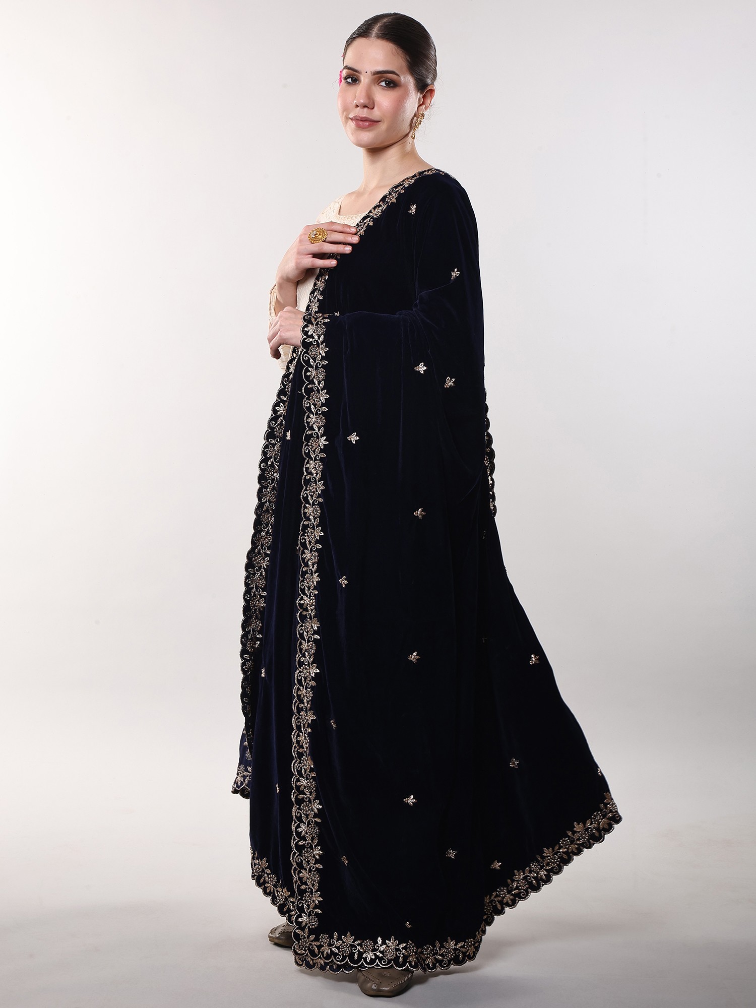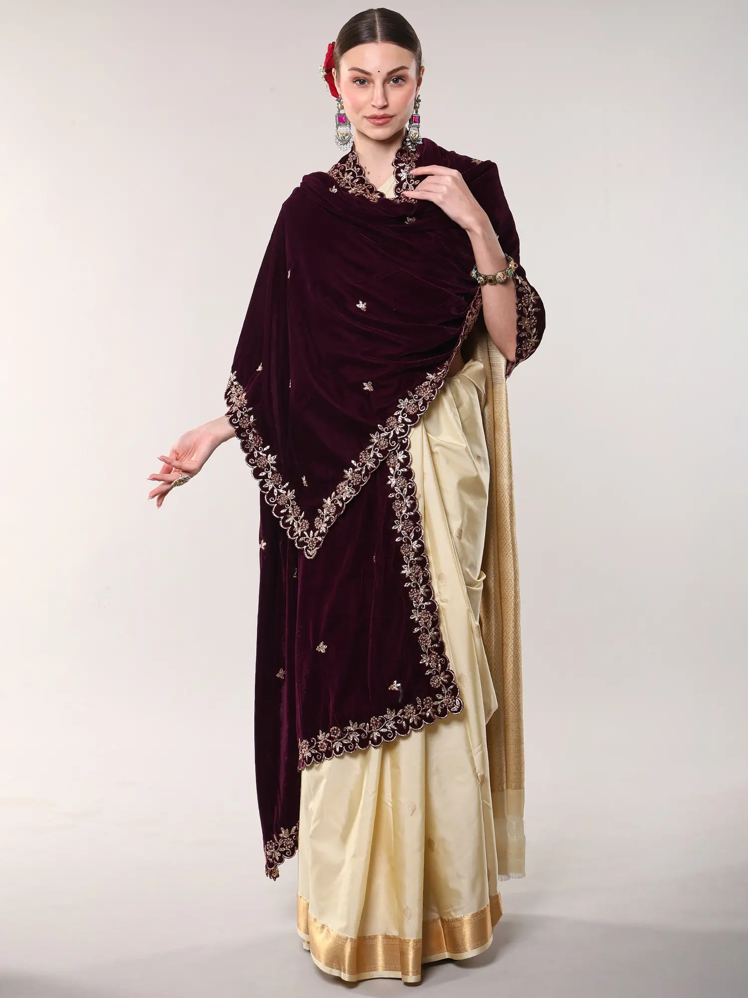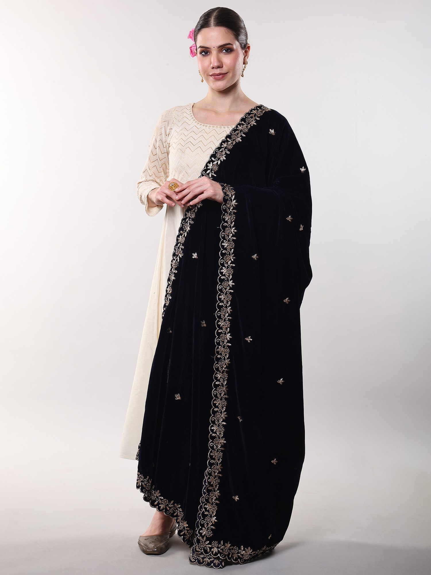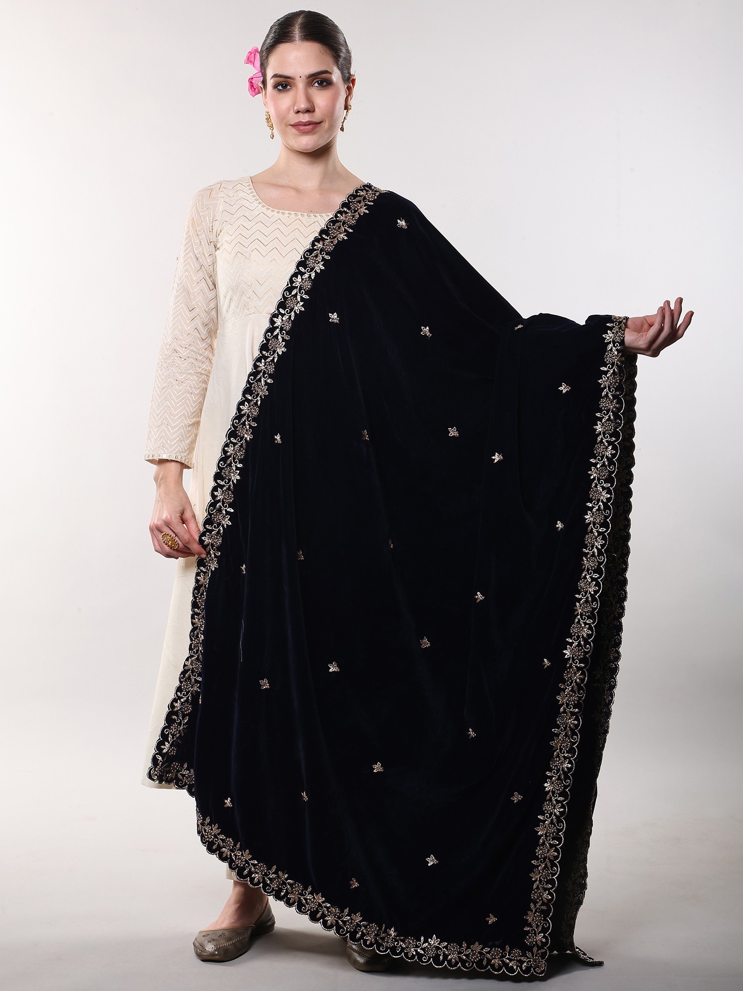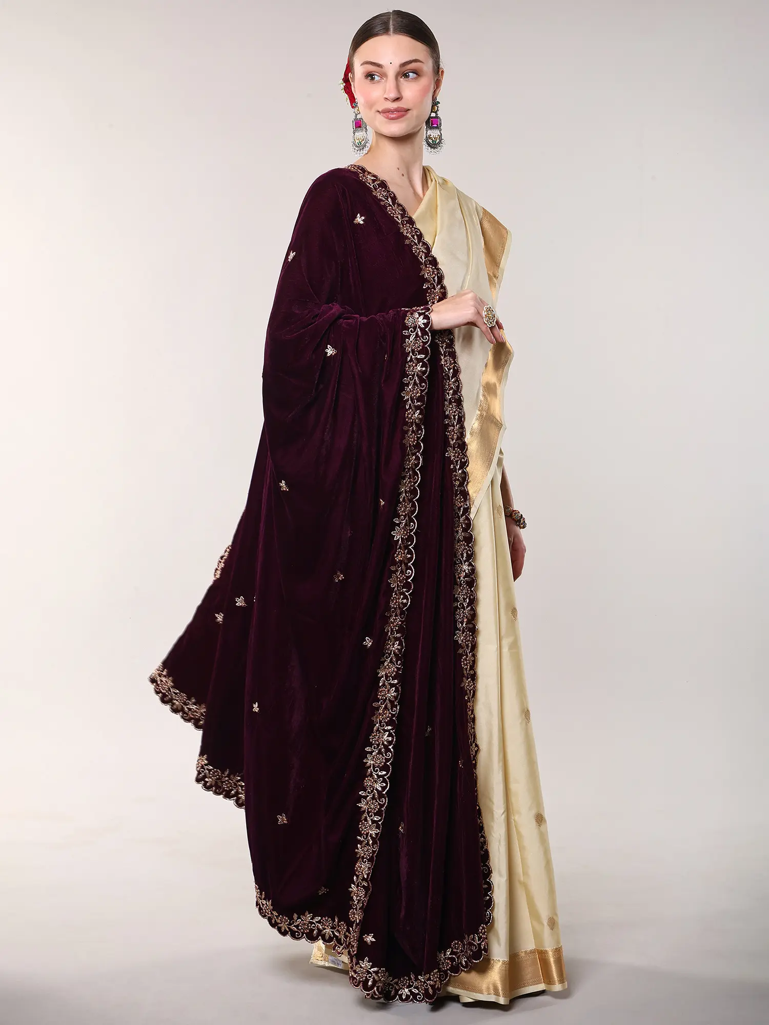 Velvet Dupatta from Amritsar with Embroidered Flowers and Sequins
