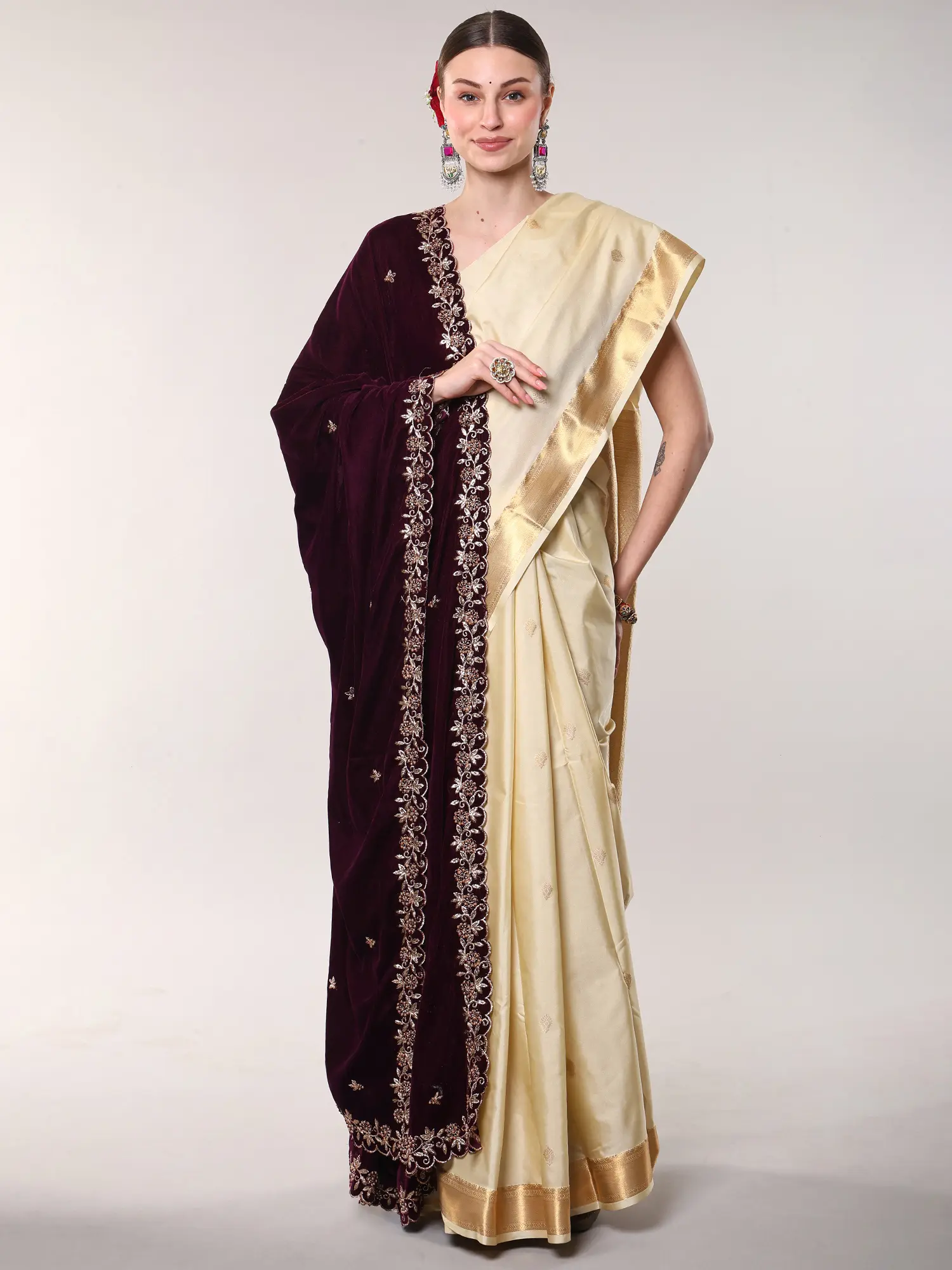 Velvet Dupatta from Amritsar with Golden Thread woven Floral Scalloped Border and Bead work