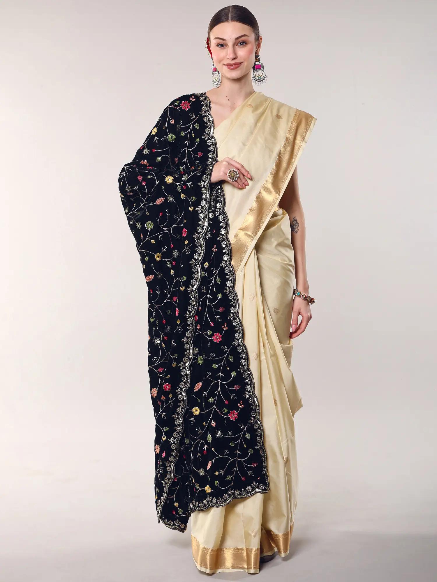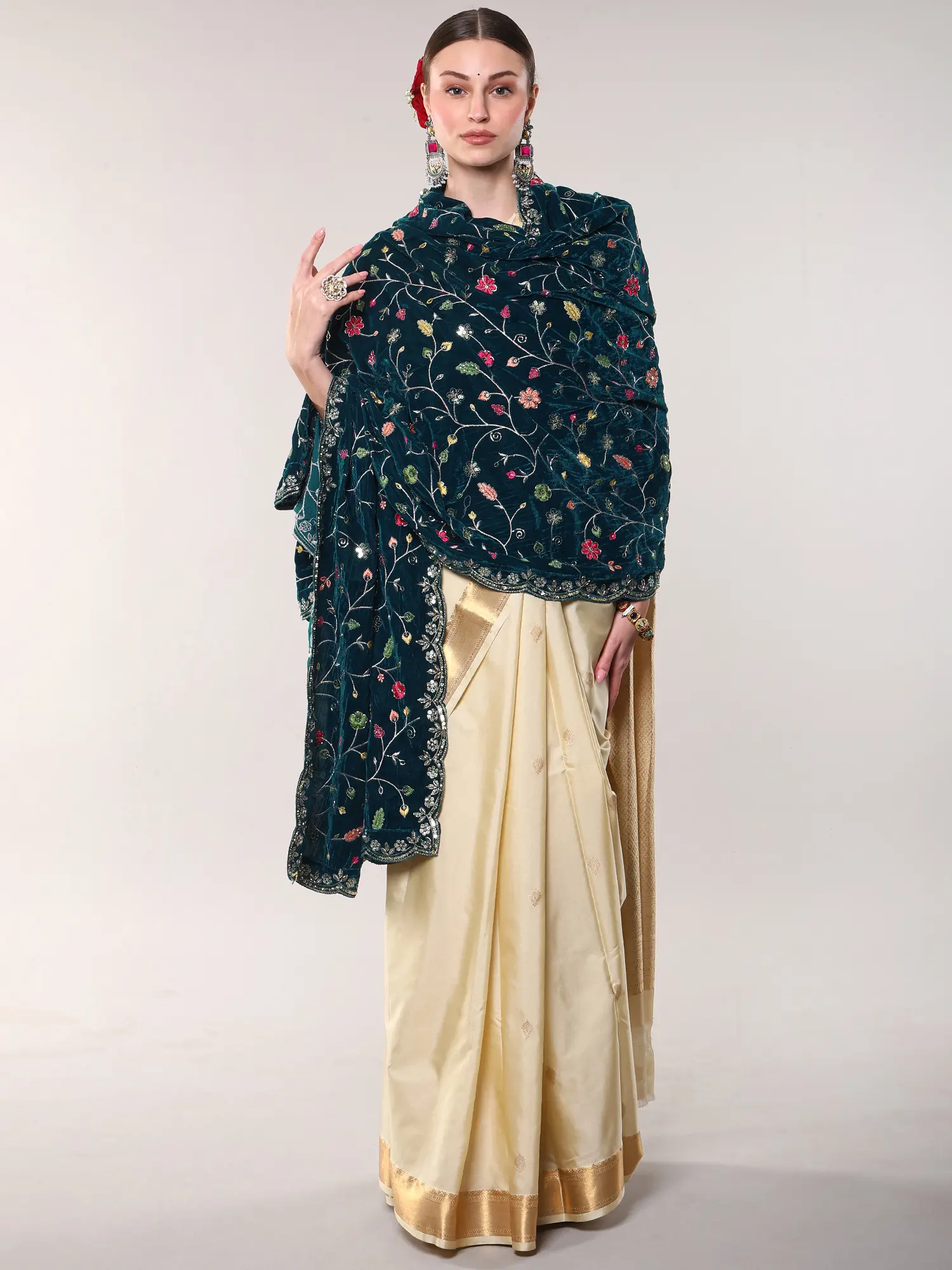 Velvet Dupatta with Zari and Sequinned Flower Embroidered Bail from Amritsar