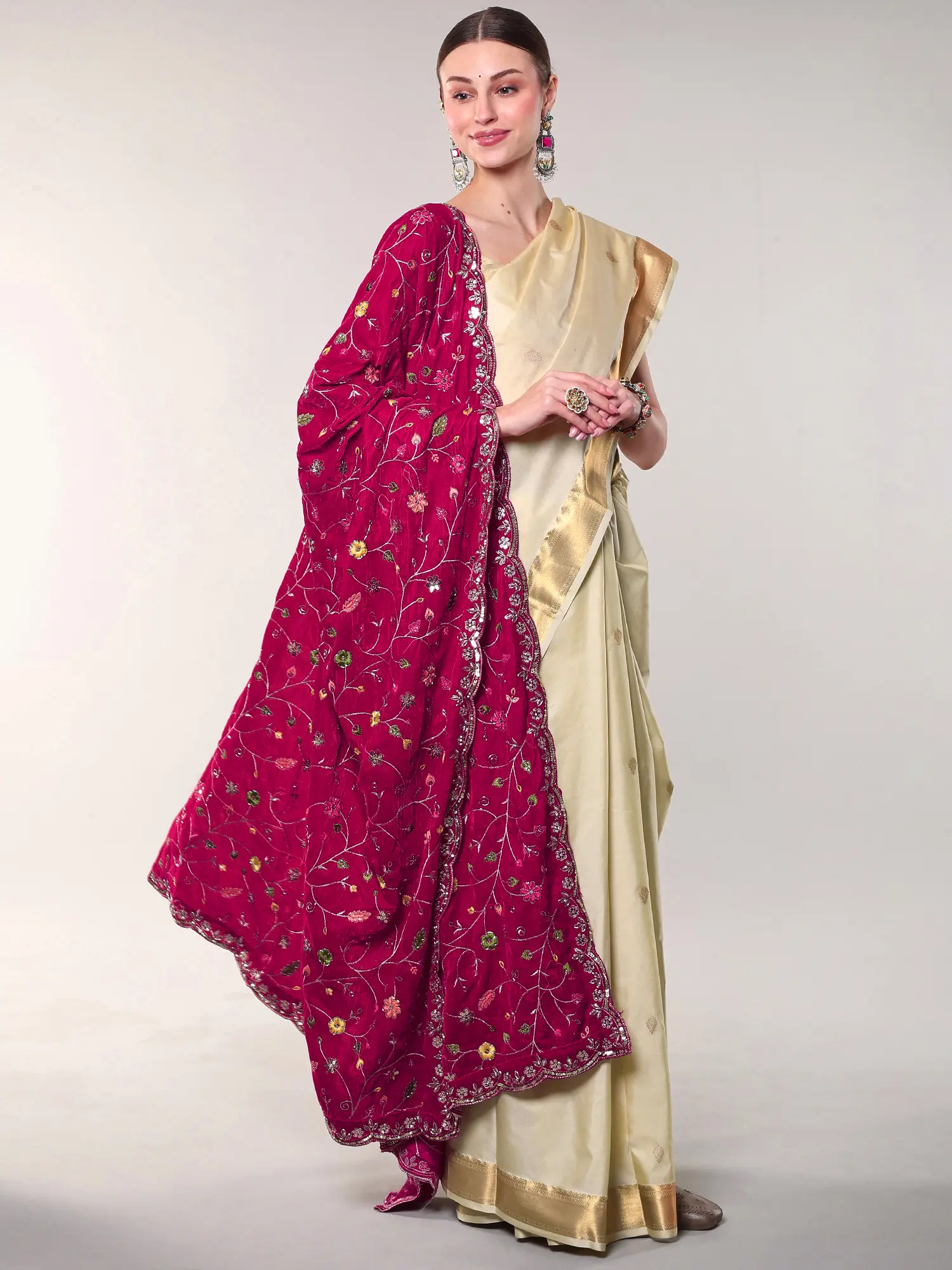 Silk Dupatta From Amritsar with Gota Patti, Floral Beads and Velvet Tassels on Edges
