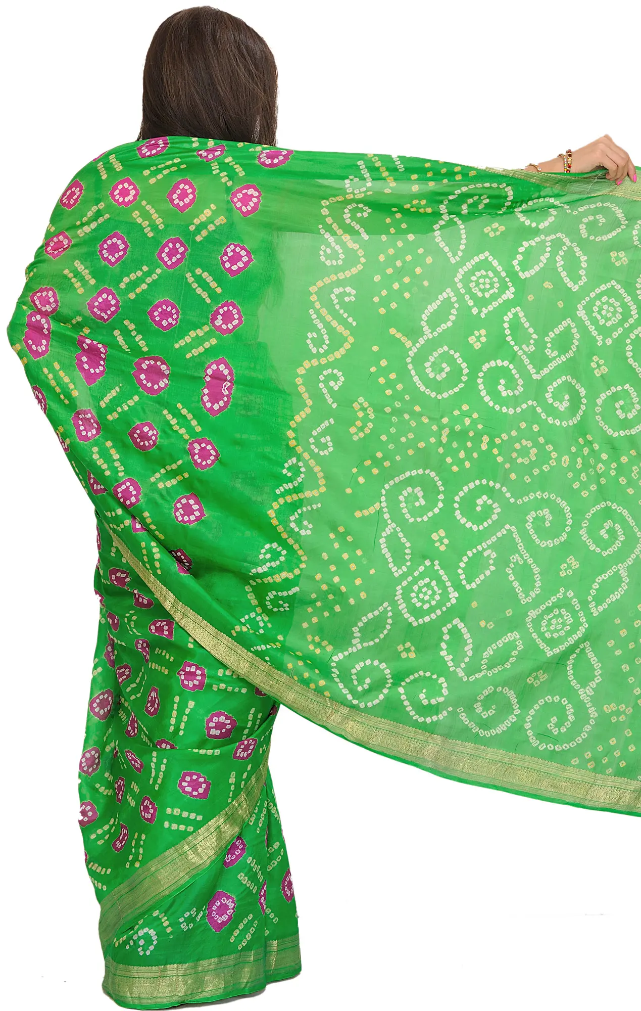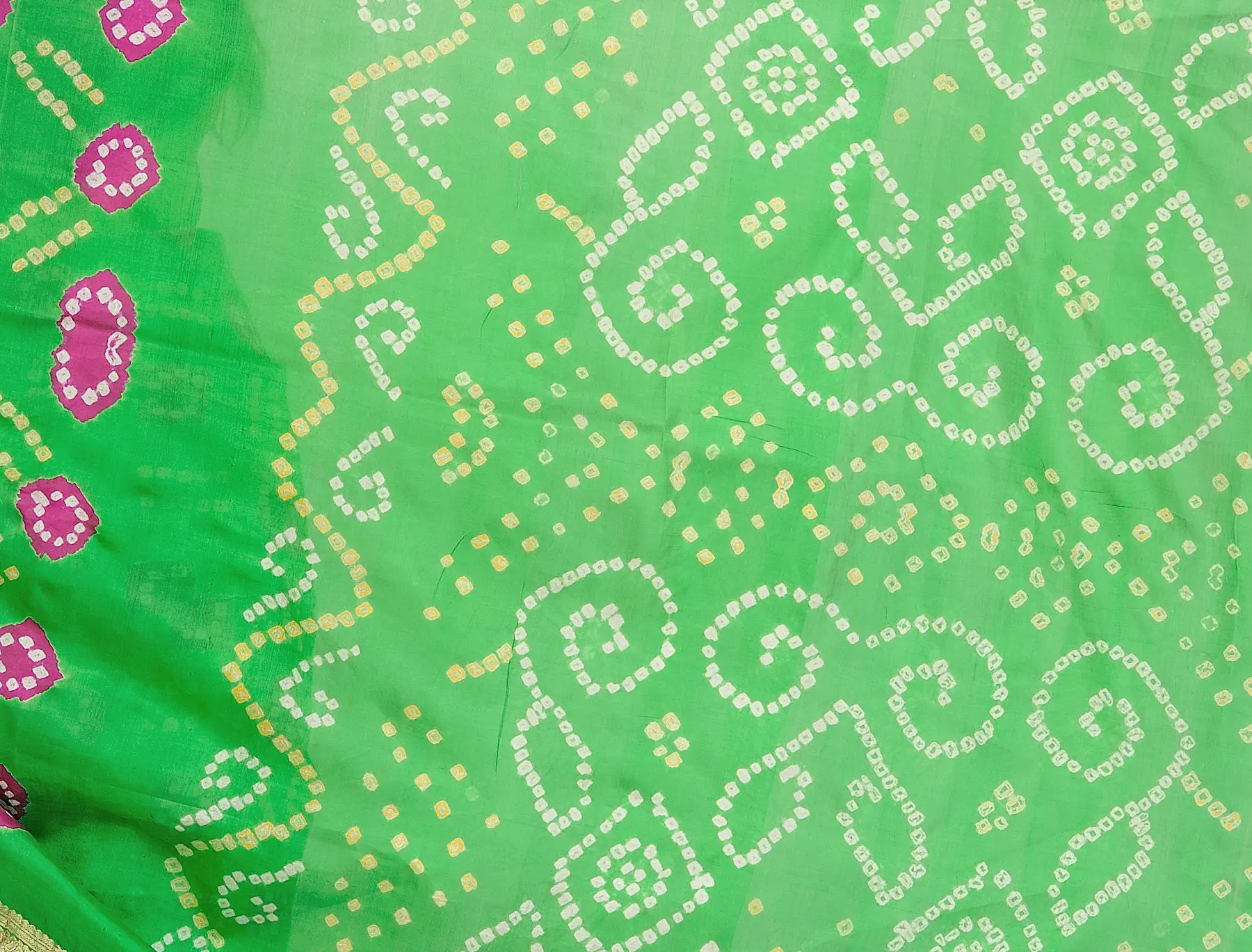 Vibrant Bandhani Tie-Dye Saree from Gujarat with Brocade Border