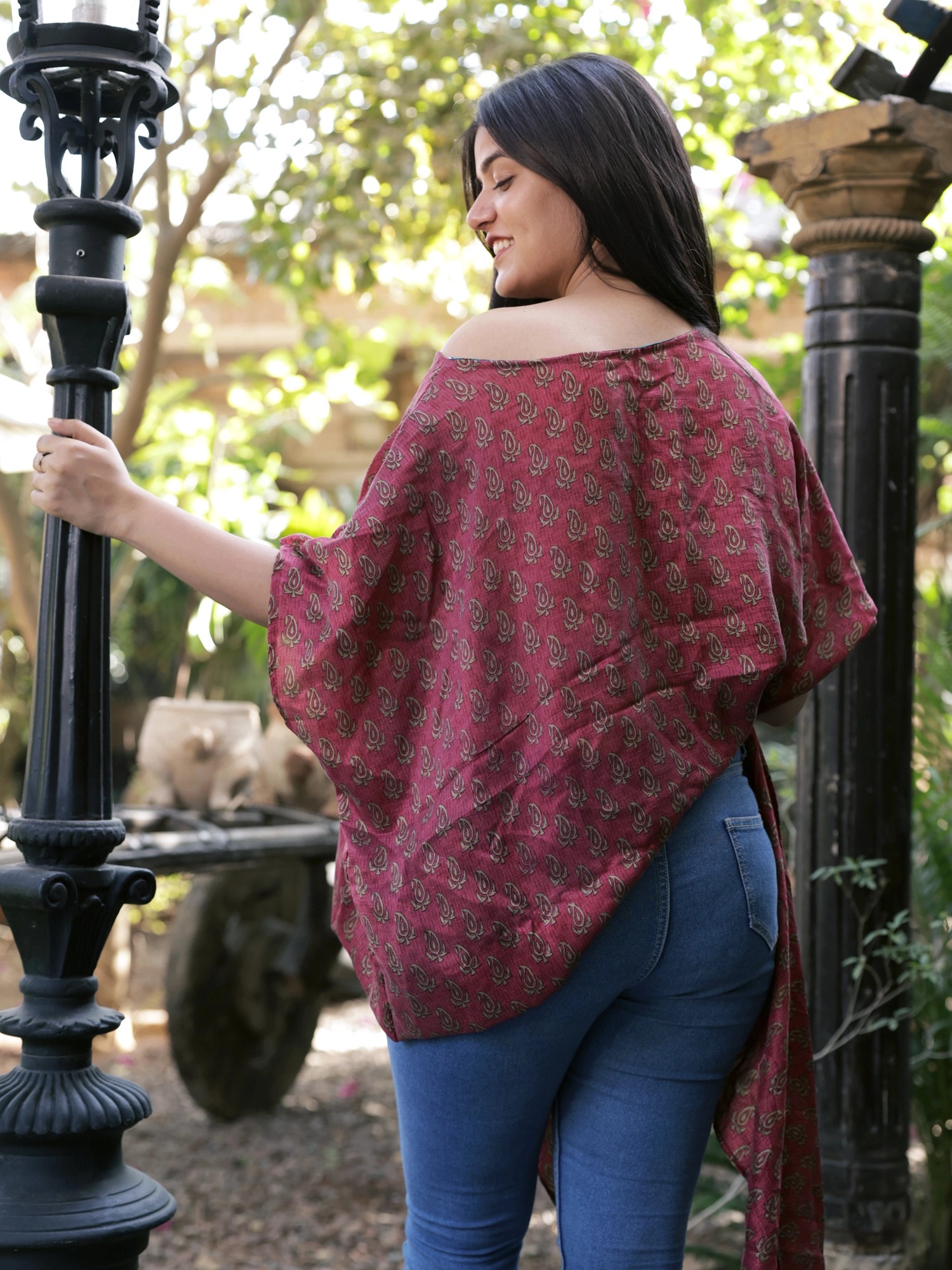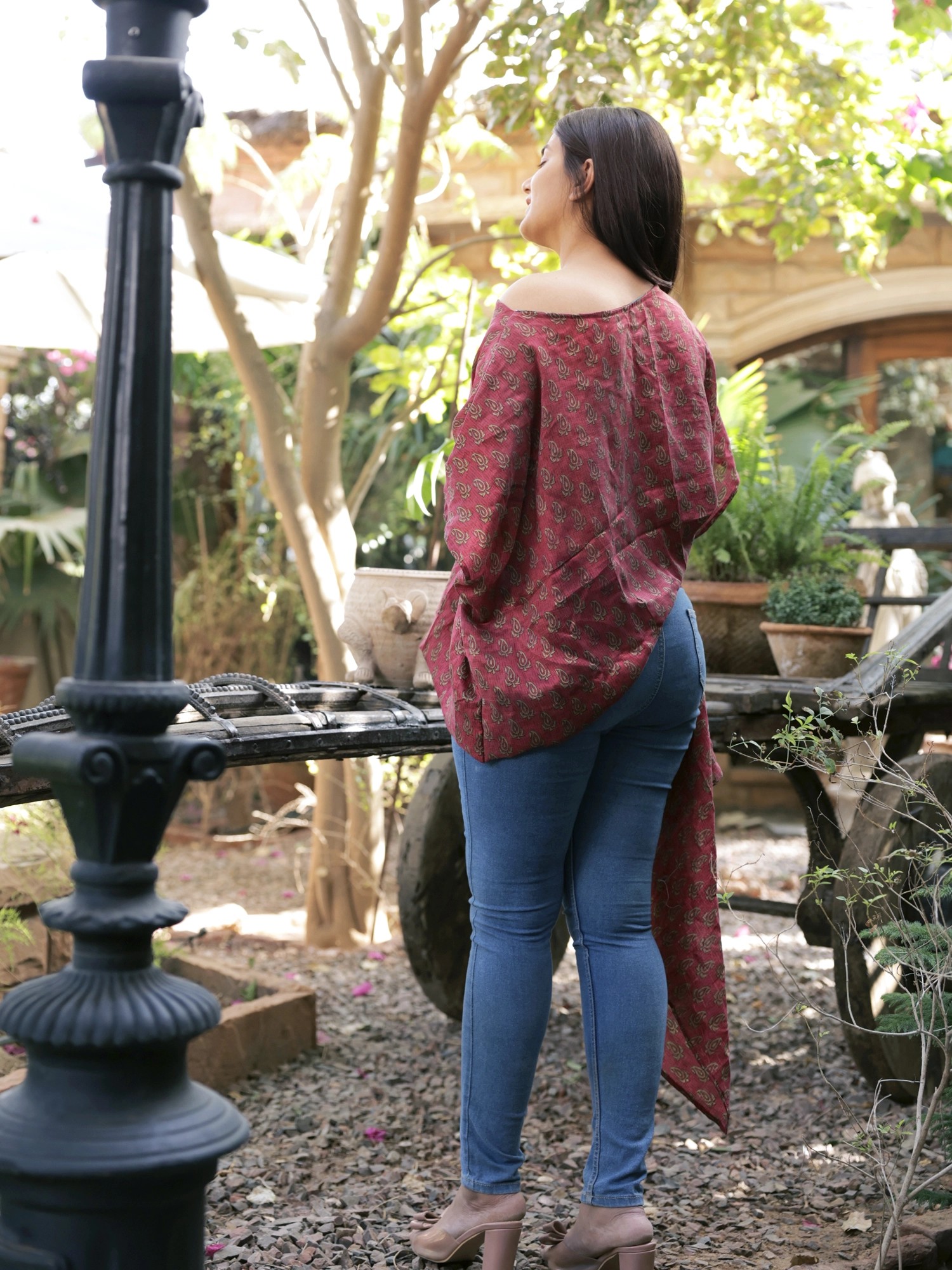 Bring the luxurious feel of pure silk to your casual ensembles with this pure silk top from Jodhpur. Tailored from the best quality silk, the top is designed with a modern touch of the side knot, that adds a stylish detail to the look.