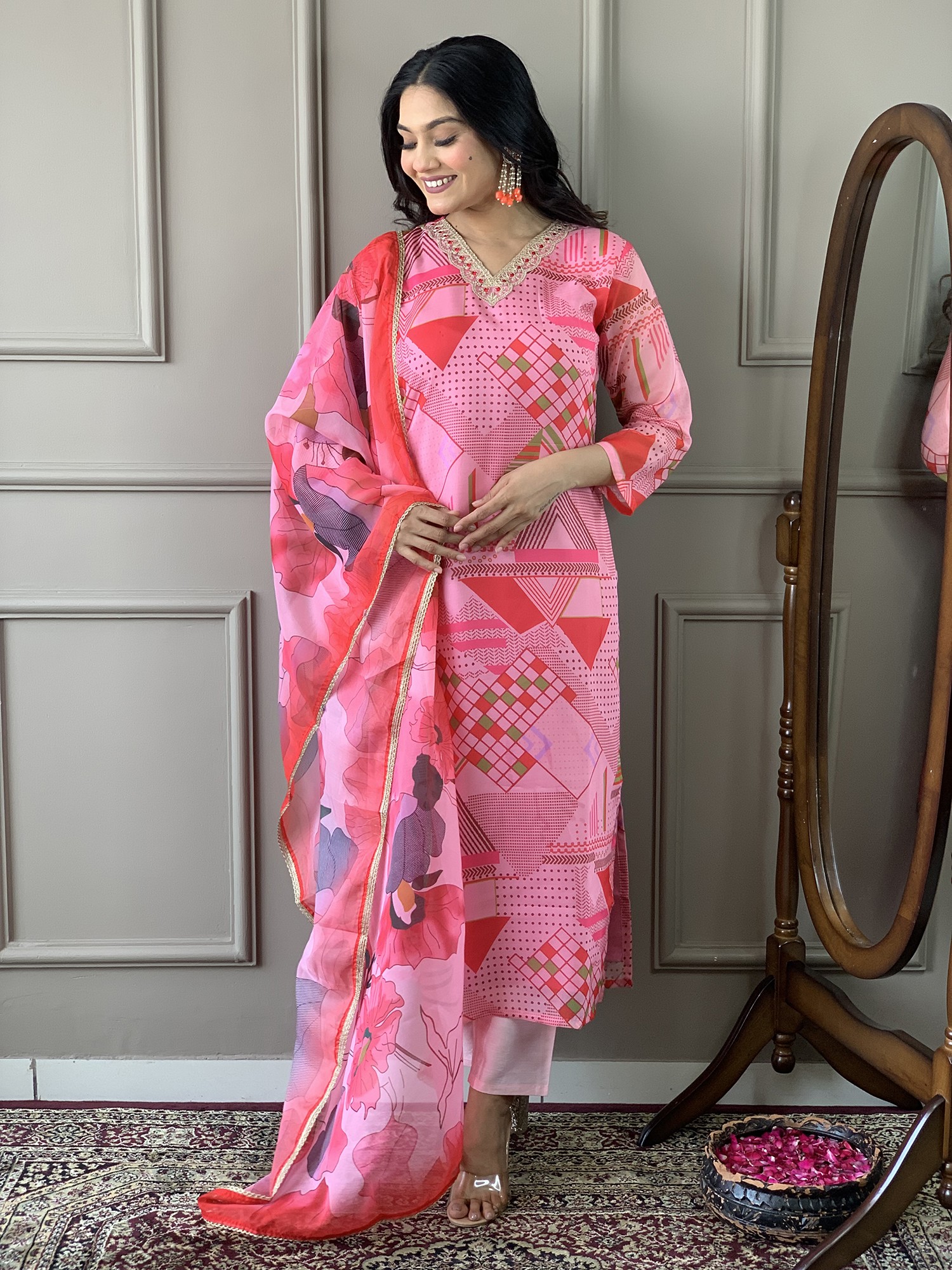 Cameo-Rose Salwar Suit with Aari Embroidered Bootis and Dupatta