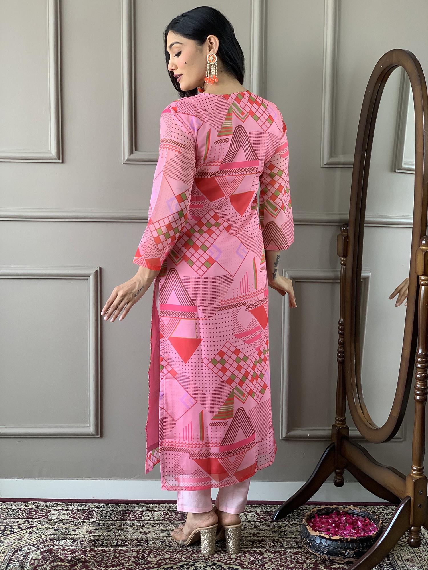 This salwar suit is a versatile addition to any wardrobe. Whether you're attending a festive celebration, a formal gathering, or simply want to elevate your everyday style, this outfit is an excellent choice. Pair it with delicate jewelry and heels for a dressed-up look, or opt for flats and minimal accessories for a more relaxed vibe. The size of this suit is size 36 (Small)