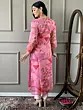 Peach-Yellow Embroidery Sequins & Hand Work Floral Leaf Printed Beautiful Organza Salwar Suit With Dupatta