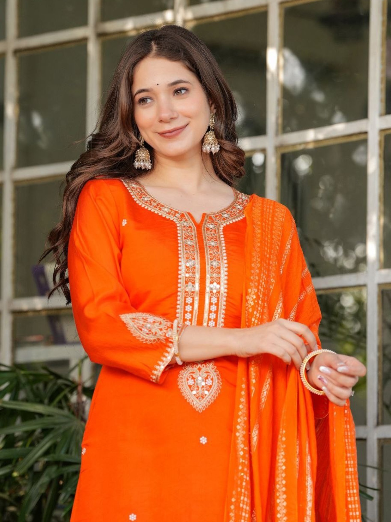 Chinon Sequins And Embroidery Work Designer Kurta Set With Matching Dupatta