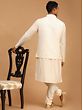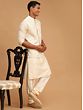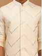 Viscose Cream Kurta Pajama and Mirror Embroidery Chevron Pattern Nehru Jacket