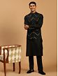 In the realm of timeless elegance, behold the Viscose Kurta Pajama and its ethereal partner, the Mirror Embroidered Chevron Pattern Jacket. Crafted from the finest viscose and a blend of divine threads, this ensemble embraces the essence of artistry. The Viscose Kurta, with its flowing silhouette, drapes the body like a whisper of grace. It dances in harmony with a celestial jacket, adorned with mirrors that shimmer like stars in a midnight sky, forming a mesmerising chevron pattern. This ensemble captures hearts, ignites conversations, and elevates the wearer to a realm of unparalleled beauty.