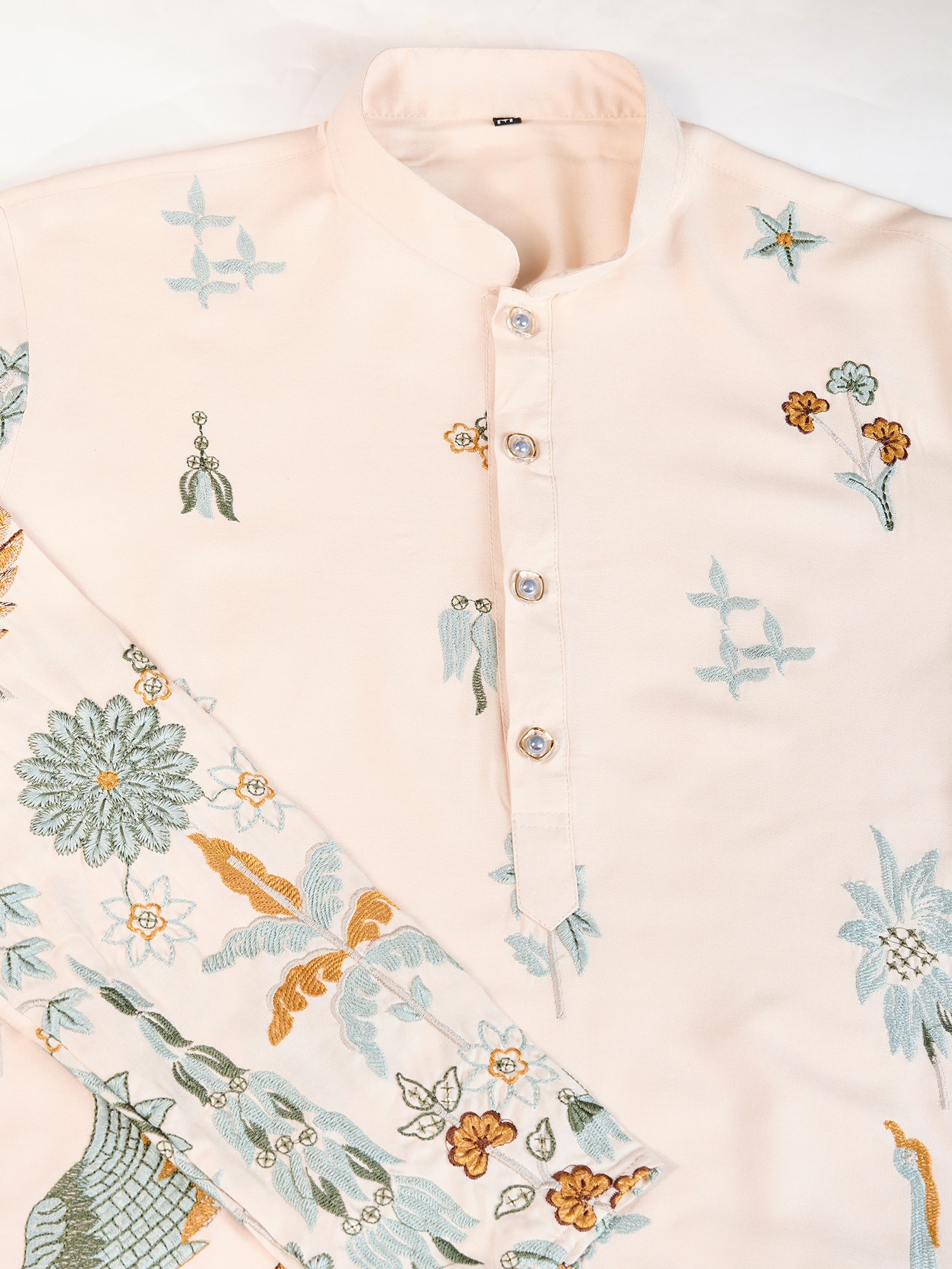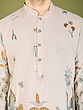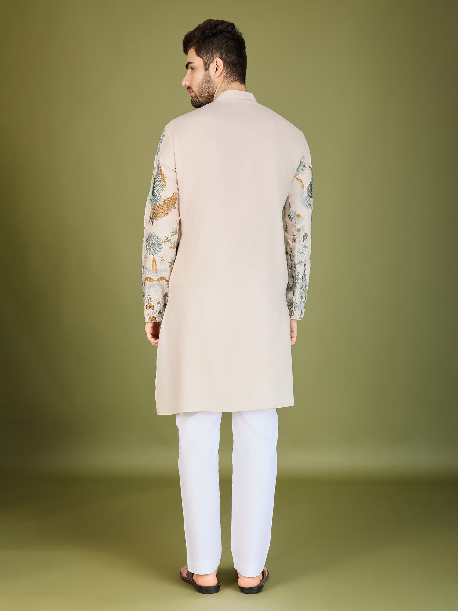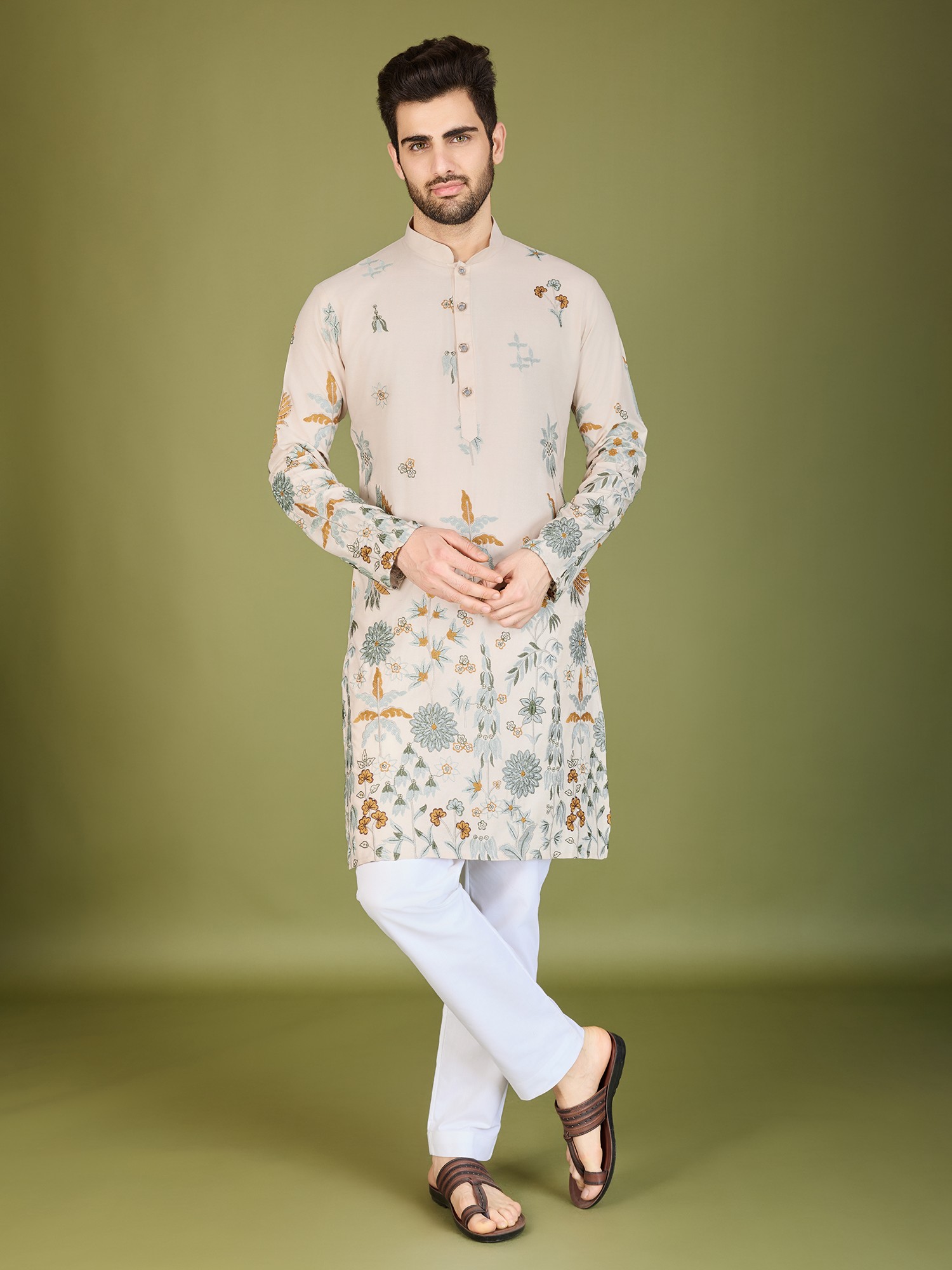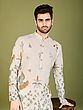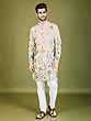 Wedding Kurta Pajama Set with All-Over Woven Floral Motifs in Self