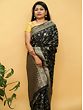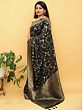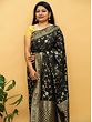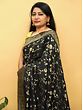 Keeping in touch with the style of the traditional Banarasi Silk Saree, the body of the saree is covered in flowing floral vines, which create an enchanting golden detail of the attire.
