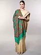 The embroidery on this stole is a true testament to the Aari stitch's versatility. Delicate floral vines meander across the fabric, interspersed with classic paisley motifs, each rendered in a riot of captivating colors. Fiery reds, warm oranges, soft pinks, and deep maroons bloom against the green, creating a dynamic and visually stunning composition. The floral elements are rendered with remarkable detail, from the subtle shading of petals to the delicate curling of leaves, while the iconic paisley shapes add a touch of traditional elegance. The embroidery extends to the borders, framing the stole with a continuous band of this captivating artistry, and even the fringed edges are adorned with subtle hints of the vibrant pattern.