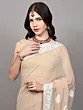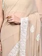 Flamingo-Pink Georgette Saree with Aari Embroidered Paisleys Vine Border and Anchal from Kashmir