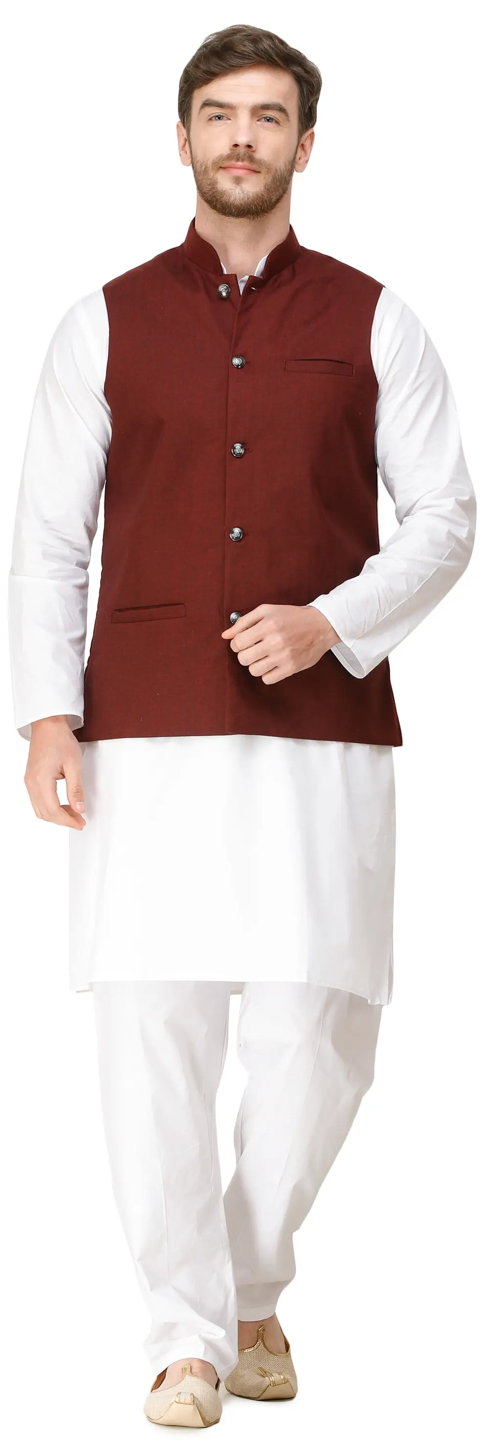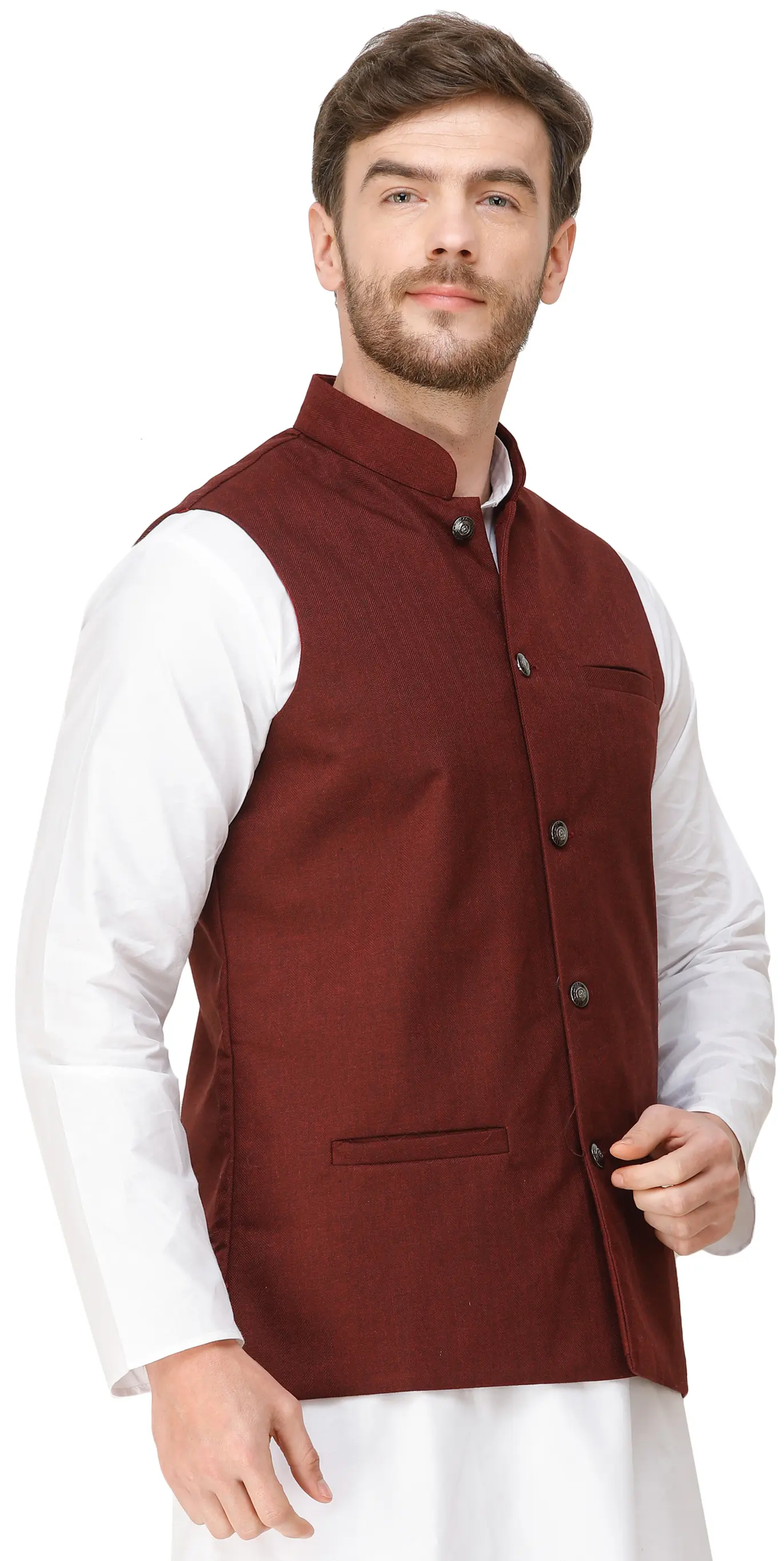 Add a touch of dapper flair to your ensemble with this waistcoat adorned with woven diagonal stripes. The intricate pattern not only showcases a sophisticated design but also provides a stylish dimension to your outfit. Front pockets give it a sleek look and more utility, making it a garment that works well for a variety of settings. Elevate your formal or semi-formal look with this waistcoat, effortlessly combining classic charm with modern style.