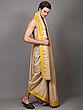The distinguishing feature of this set lies in its captivating temple border. Adorning both the dhoti and the angavastram is a vibrant, meticulously woven border, inspired by the architectural motifs of ancient temples. This striking border, rendered in a rich, sunny yellow, adds a pop of color and a touch of sacred artistry to the ensemble. The geometric patterns and the way the yellow is integrated with the natural Khadi create a visually appealing contrast, highlighting the intricate work of the Odishan weavers. The border's design speaks of tradition, spirituality, and the enduring artistic legacy of the region.