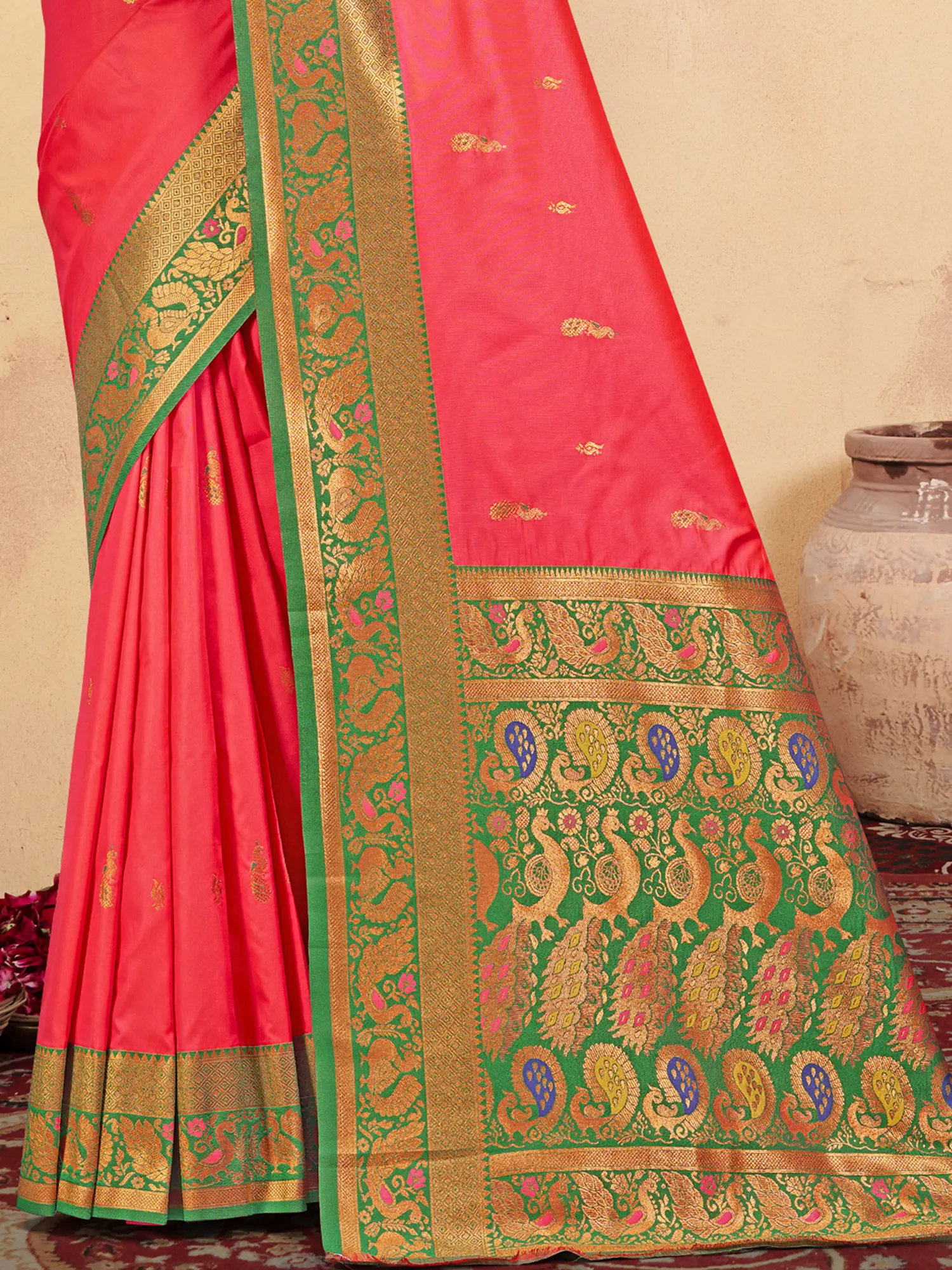 Silk Weaving Work Party Wear Broad Border Saree With Attractive Tassels Pallu