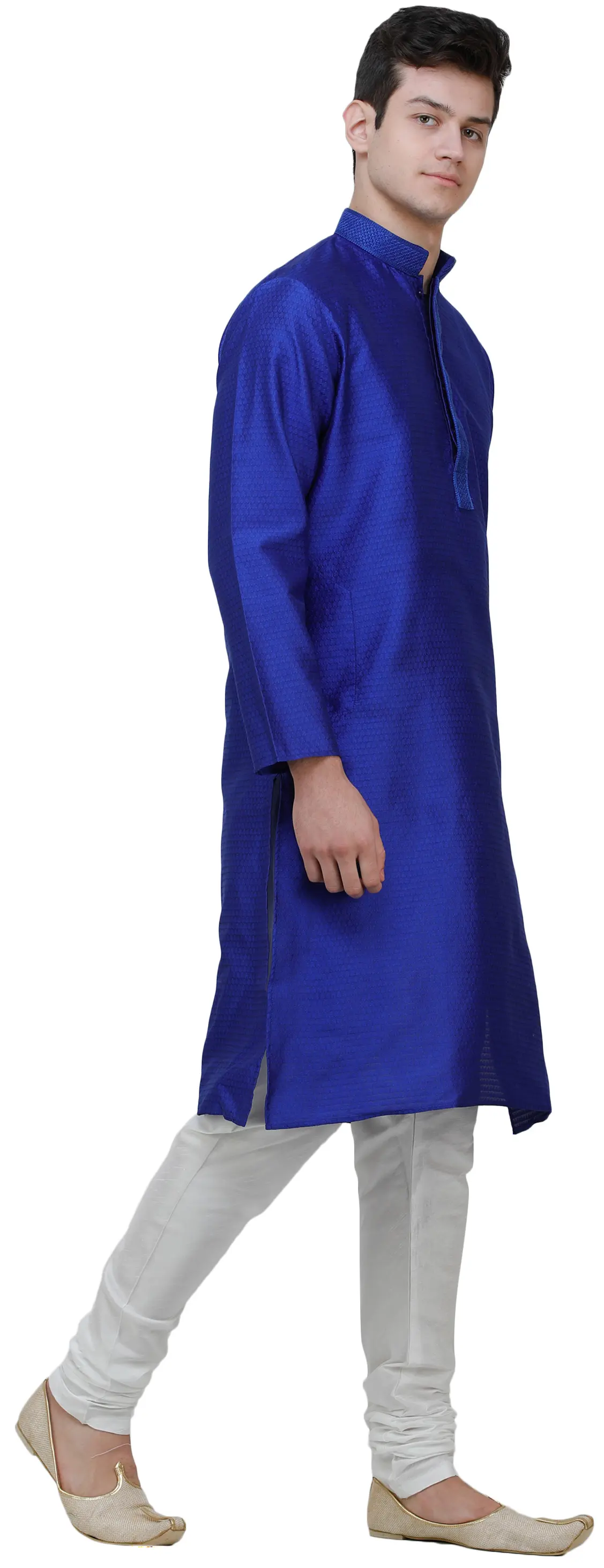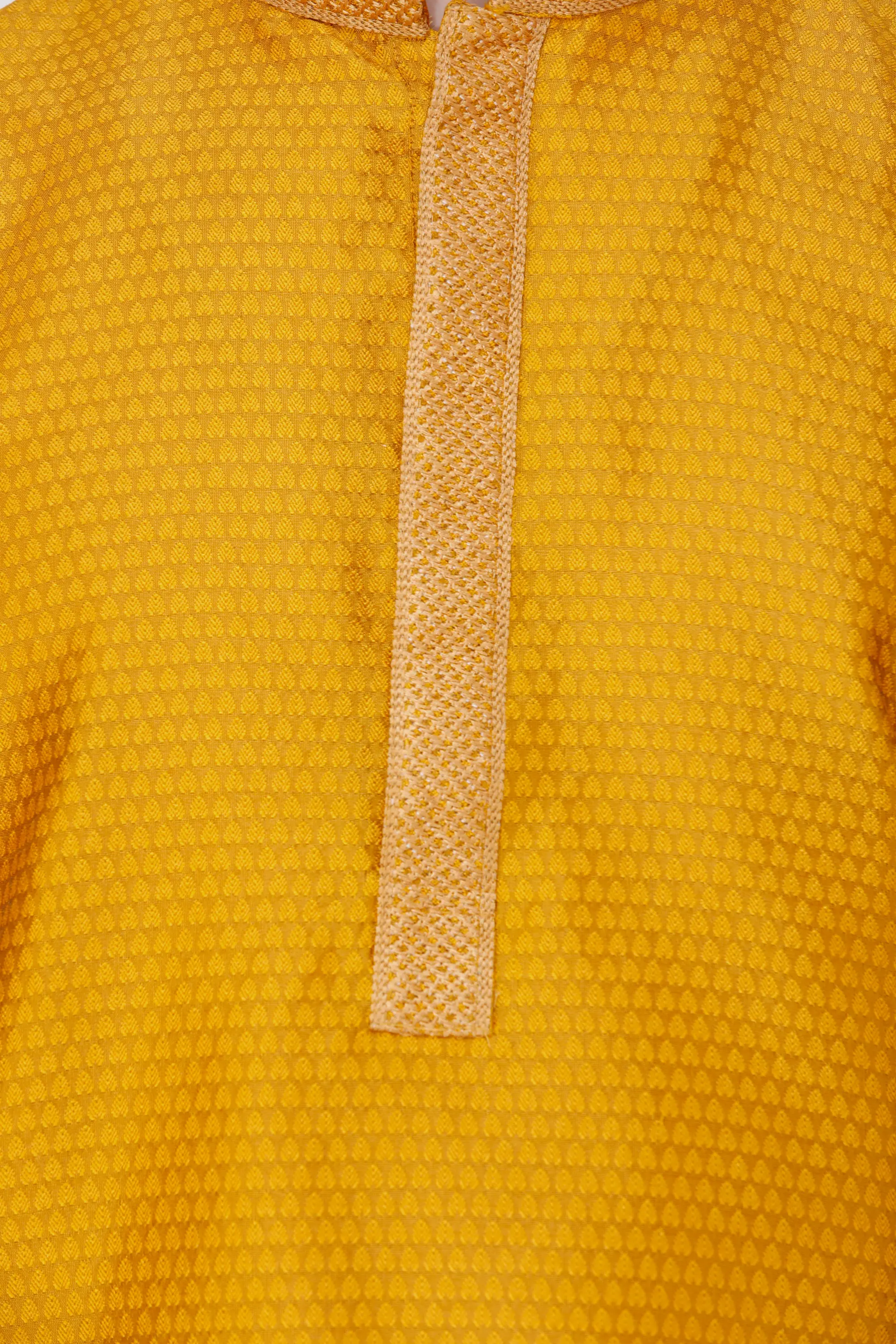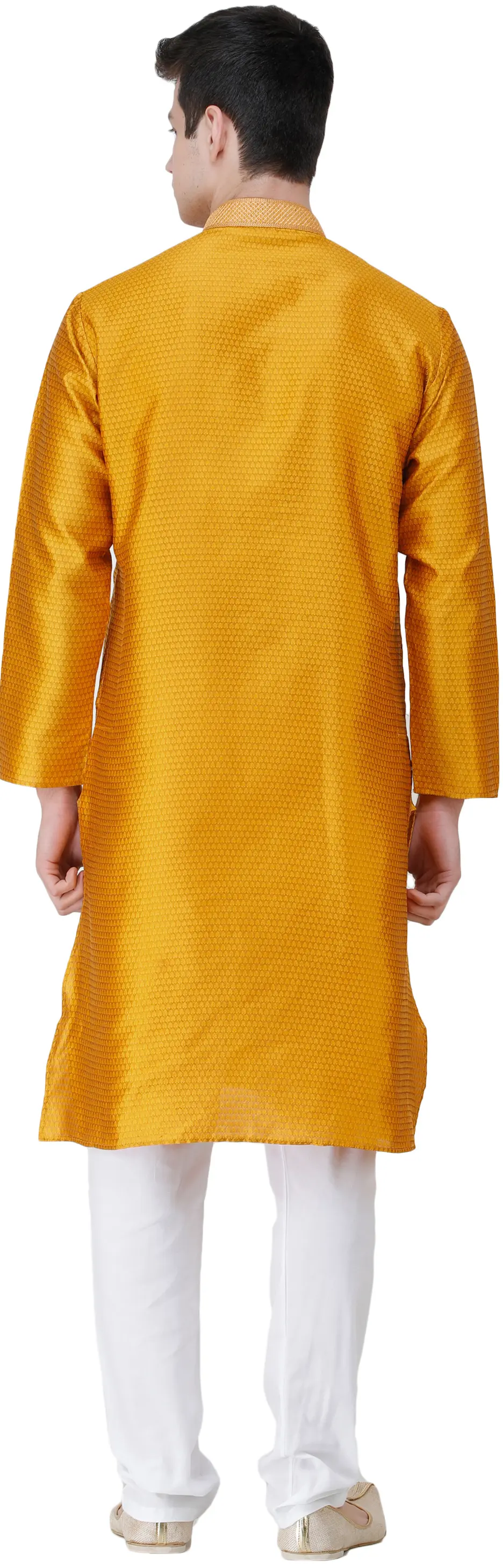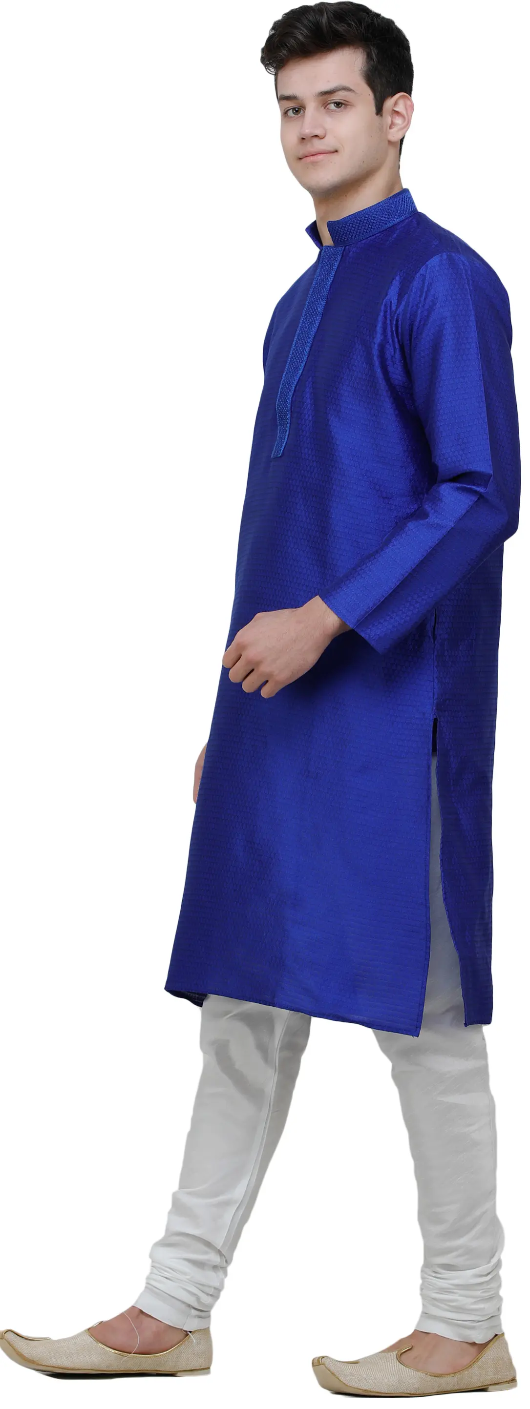 Indulge in the timeless charm of this Wedding Kurta Pajama Set, where traditional elegance meets contemporary design. The ensemble features an intricately embroidered collar that adds a regal touch to the kurta. The jacquard woven paan leaves further enhance the sophistication, creating a harmonious blend of classic and modern aesthetics. Perfect for wedding celebrations, this set exudes grace and cultural richness. Let the finely crafted details and luxurious fabric make you stand out on your special day, making it a celebration of style and tradition.