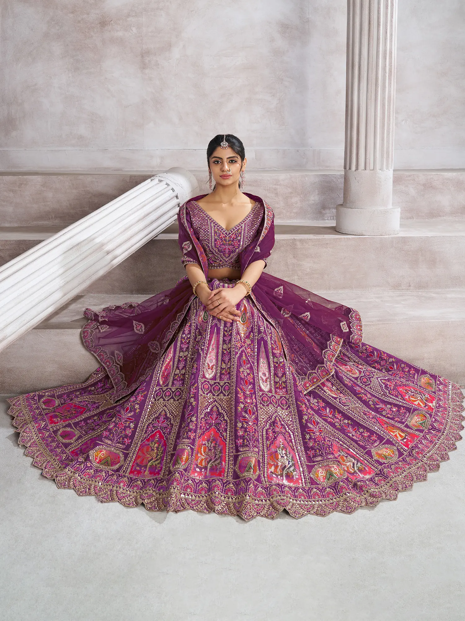 Flowing lehenga skirt creates a captivating silhouette with every step.