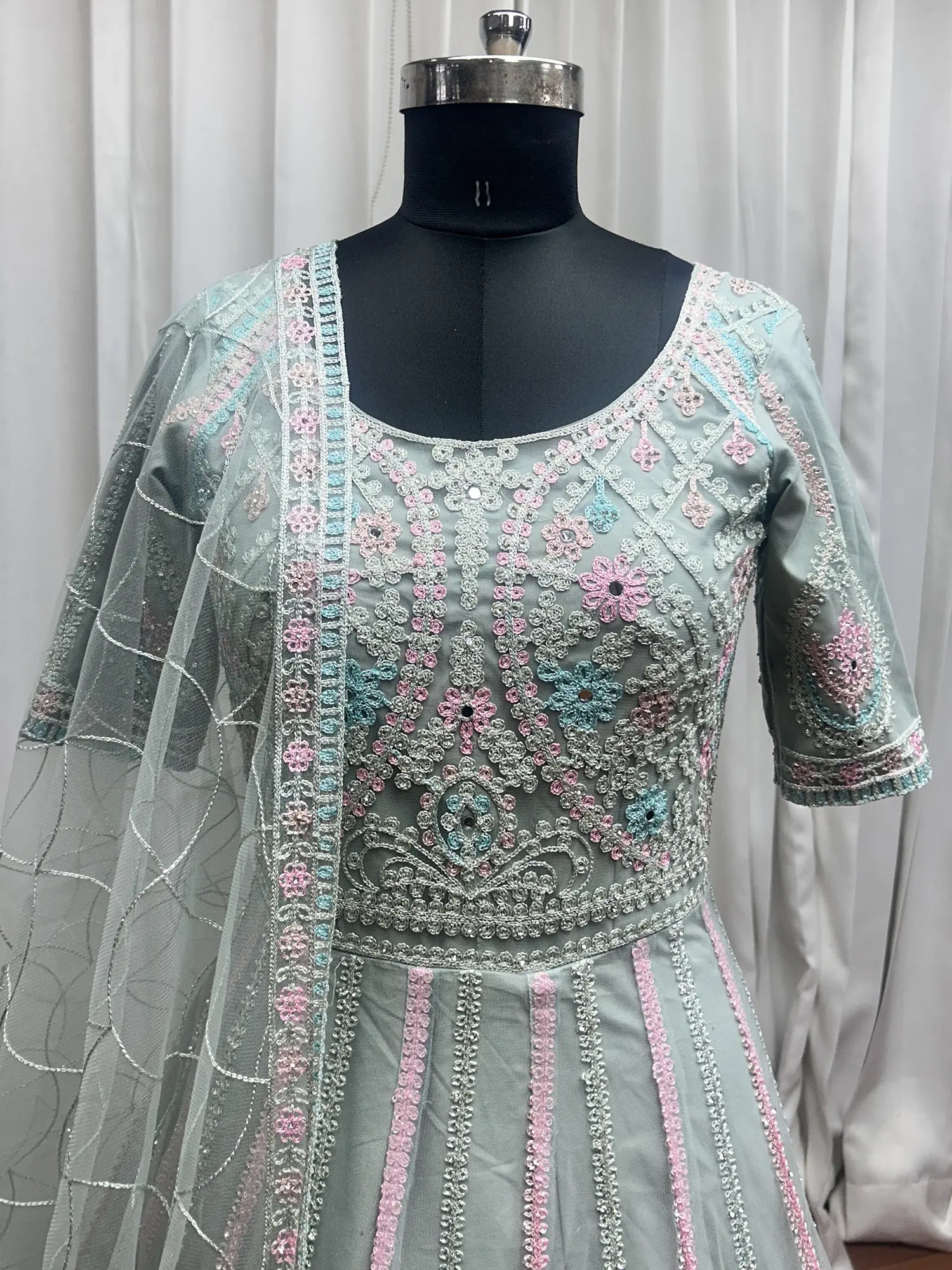 Georgette Heavy Sequins And Embroidery Work Designer Wedding Wear Gown With Matching Dupatta