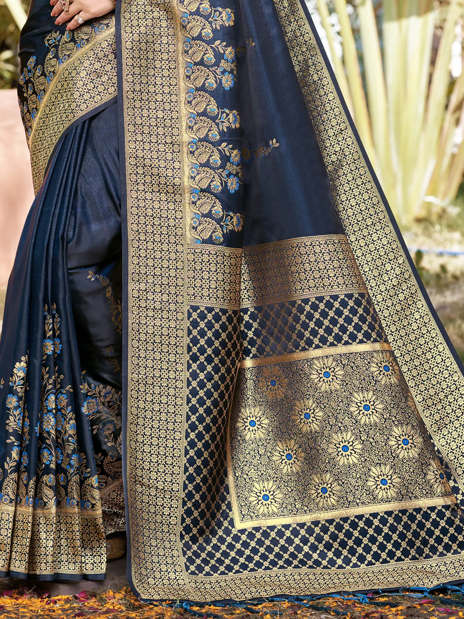 Stunning Blue Lichi Silk Saree Featuring Contrast Weaving