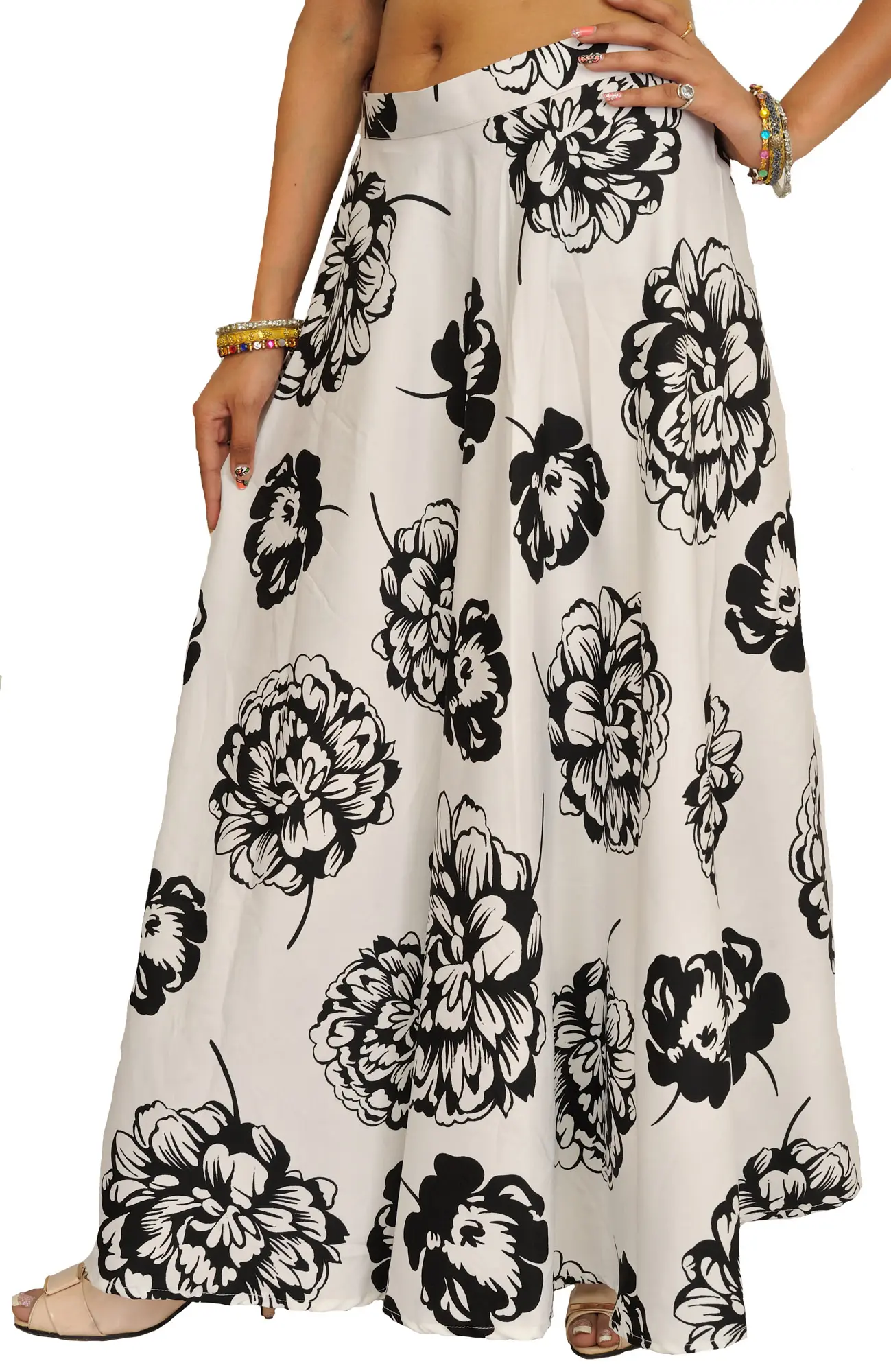 Pure Cotton Wrap Around White Skirt with Printed Foliage