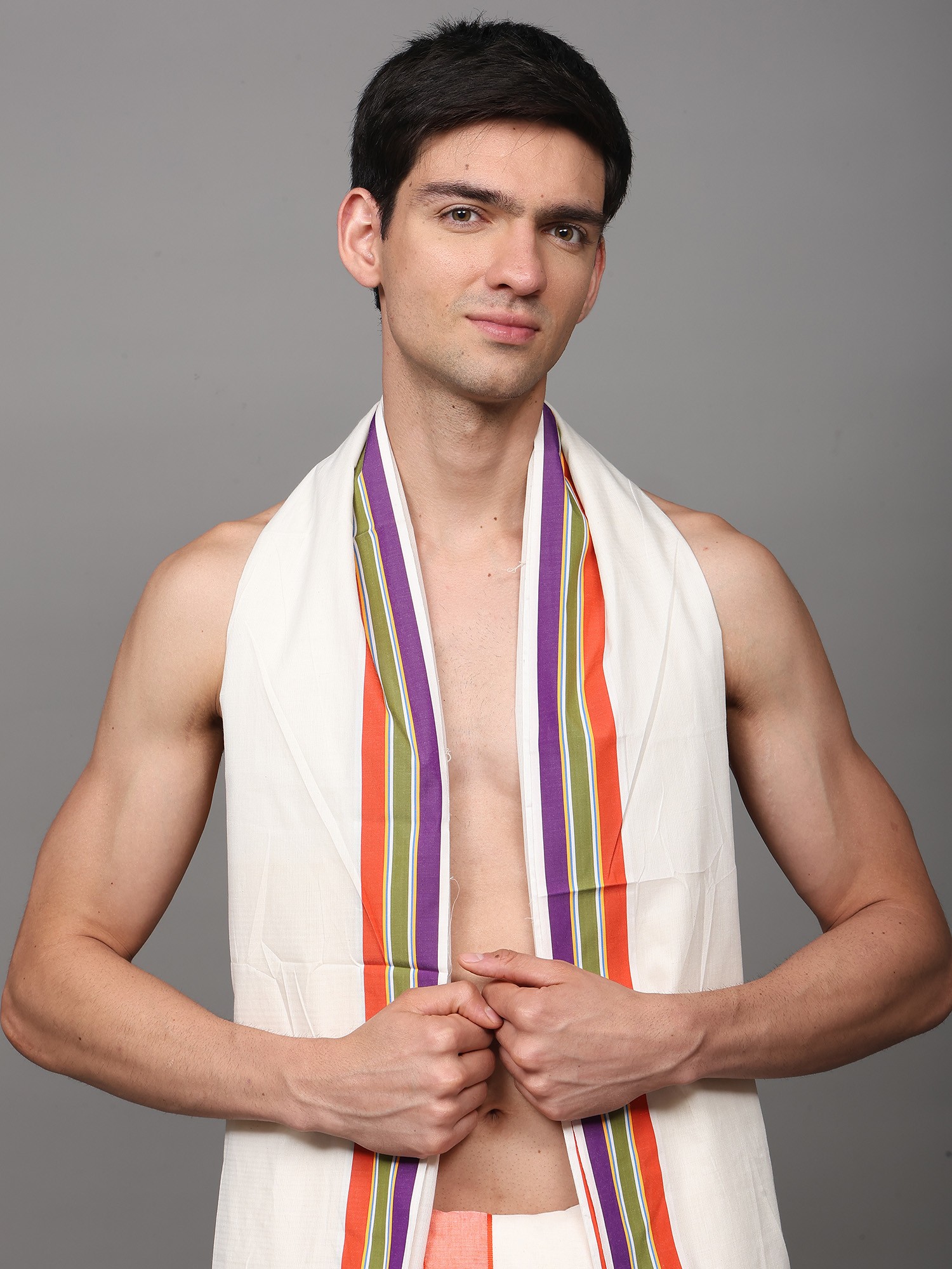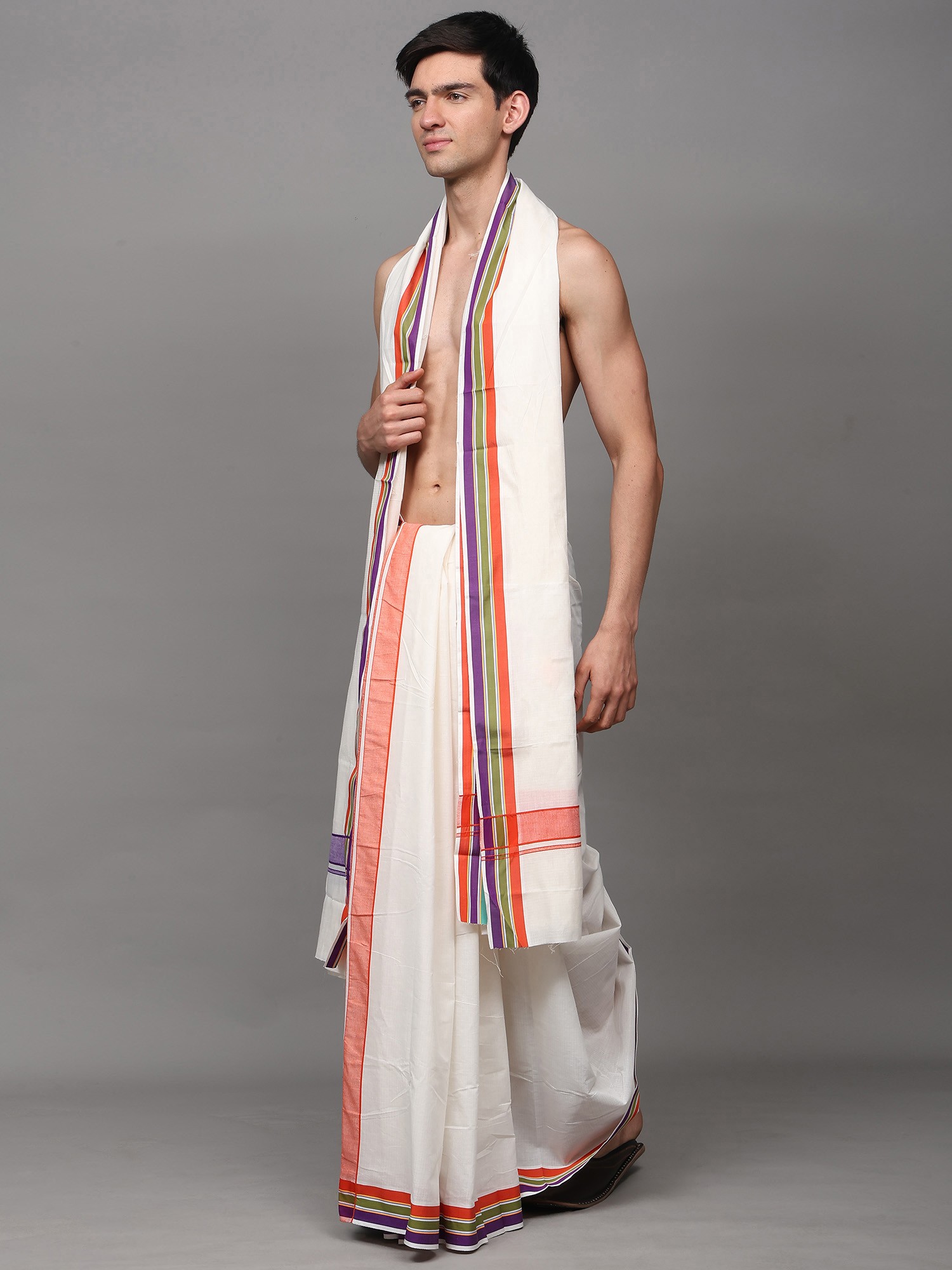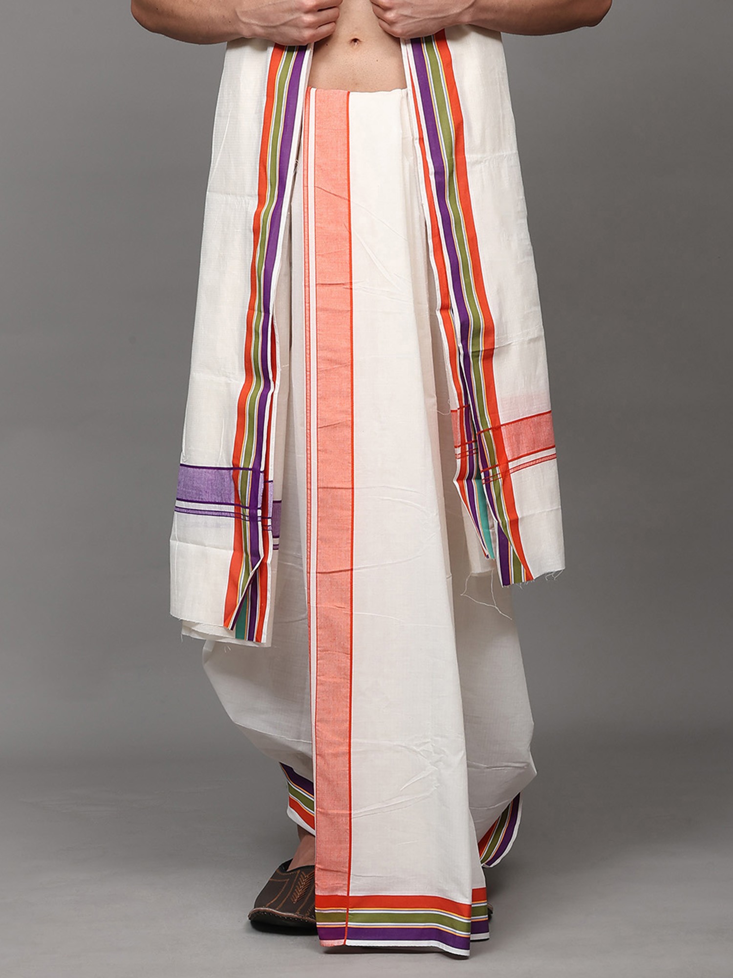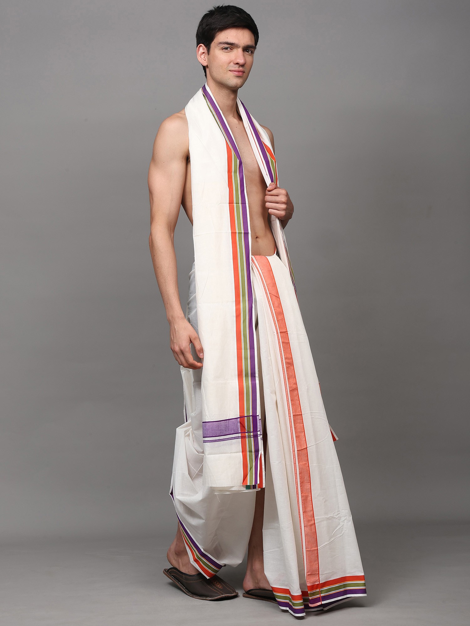 Angavastram Length 88 inches, Width 47 inches, Dhoti Length 156 inches, Width 48 inches