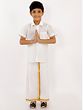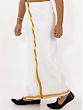 Embrace the elegance of South Indian attire with our white-gold cotton mundu. The pristine white cotton provides a canvas for the shimmering gold details, creating a sophisticated and traditional look. The mundu, a traditional garment worn by men in South India, is wrapped around the waist and drapes elegantly to the ankles. This mundu is perfect for weddings, religious ceremonies, or any occasion where you want to make a sophisticated and culturally significant statement.
