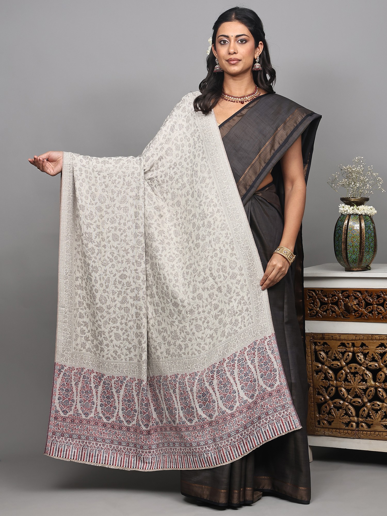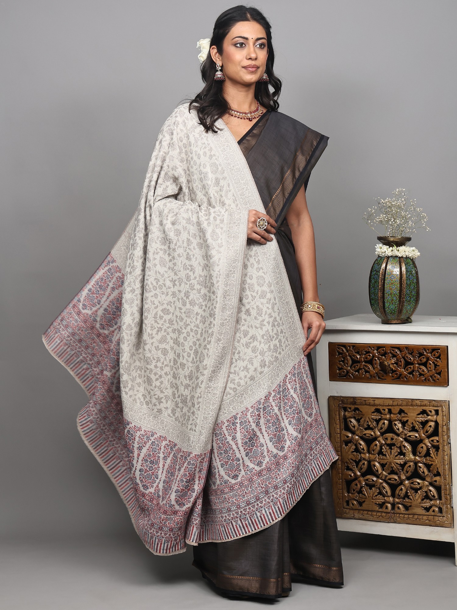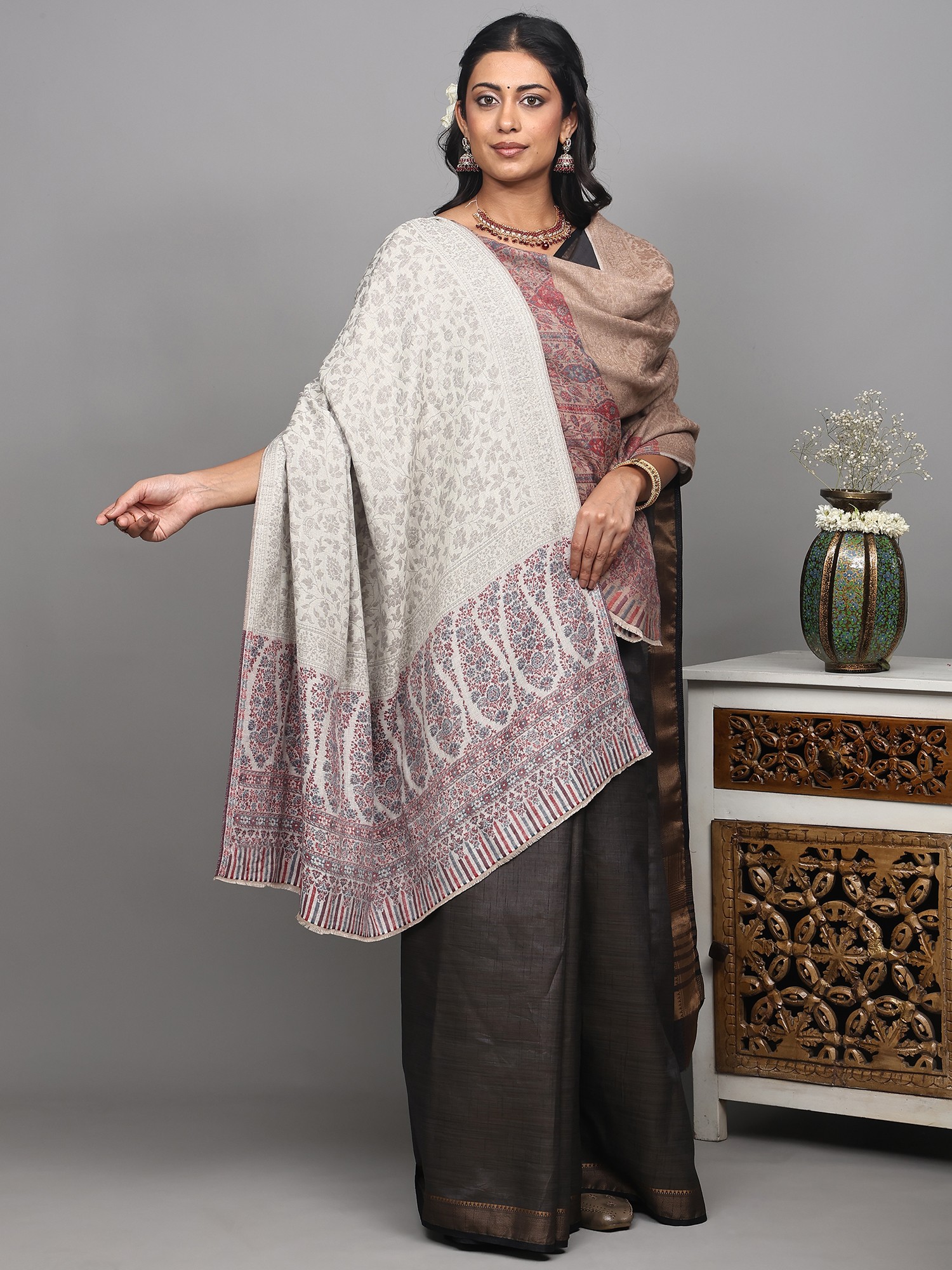 Kani Jamawar Wool Shawl from Amritsar with Woven Flowers and Paisleys